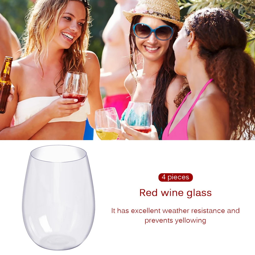 4 шт.компл., небьющиеся пластиковые бокалы для вина, небьющиеся бокалы для красного вина PCTG, стаканы без ножки бокалов es, Многоразовые прозрачные бокалы для фруктов, соков, пива