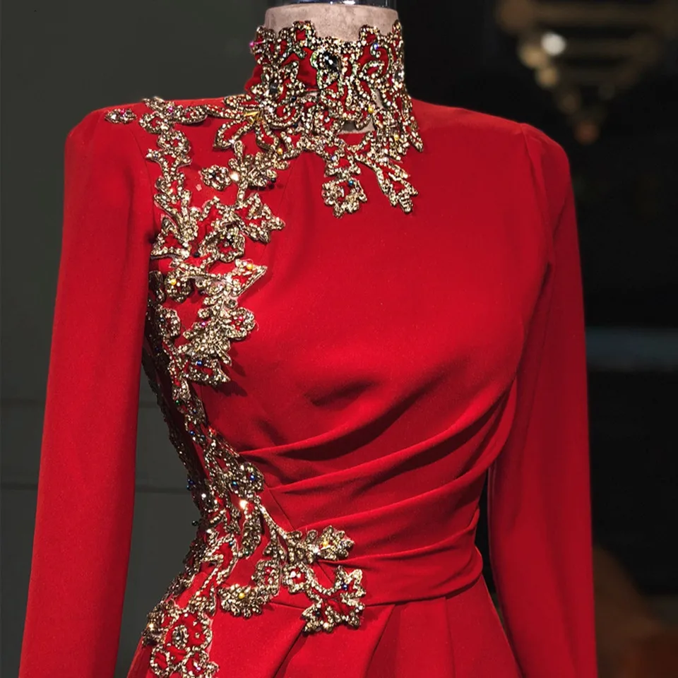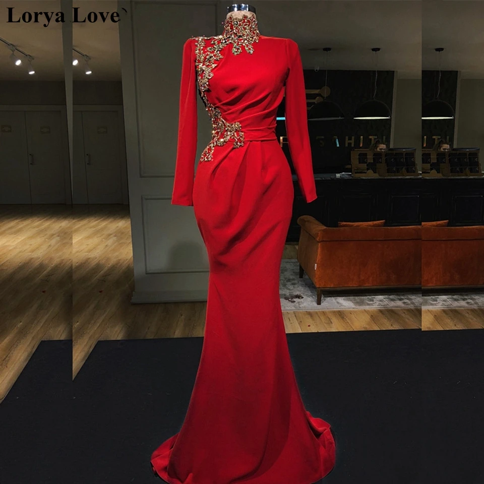 Вечерние платья с красными бусинами, Длинные арабские платья для вы...