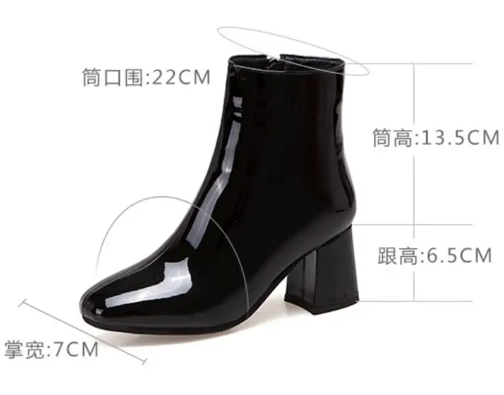 Модные женские ботильоны из лакированной кожи золотого и серебряного цвета ботинки на высоком квадратном каблуке пикантные женские туфли-лодочки Черные ботильоны u308
