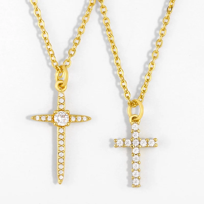 FLOLA маленькое ожерелье с подвеской-крестом для женщин женское ожерелье с крестом с микро-закрепкой CZ Ювелирные изделия Круз colgante nker24