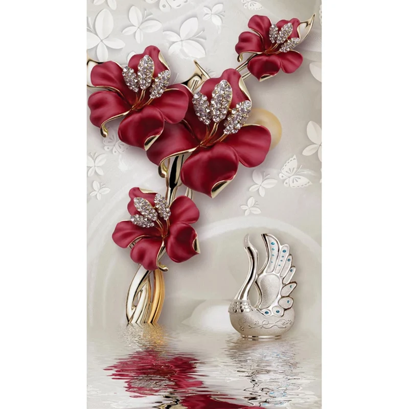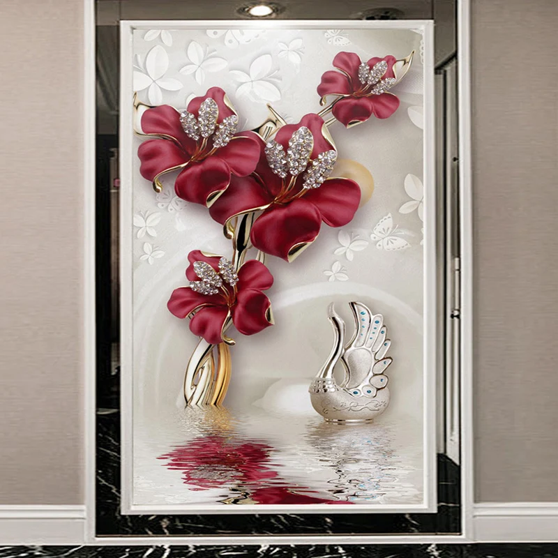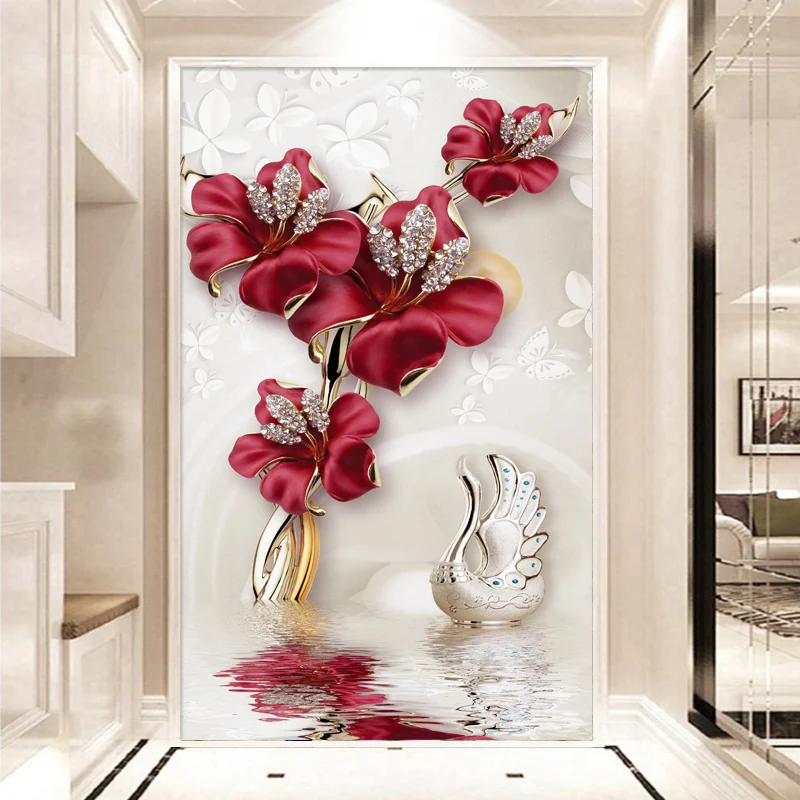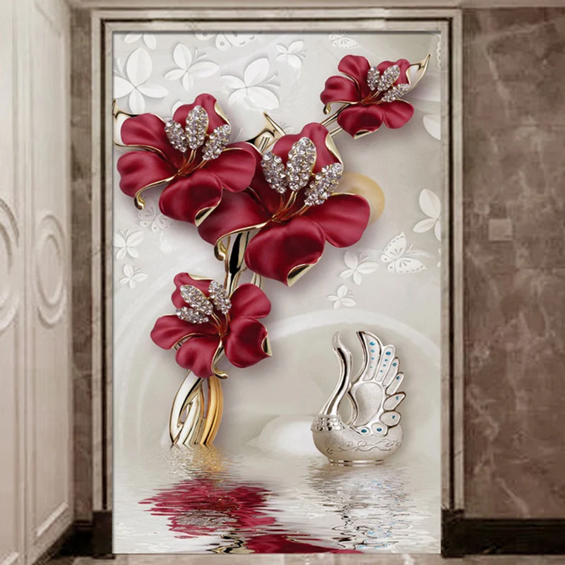Фреска на заказ, 3D украшения, красные цветы, Бабочка, вход, настенное украшение, живопись для гостиной, коридора, прихожей, фоновые обои