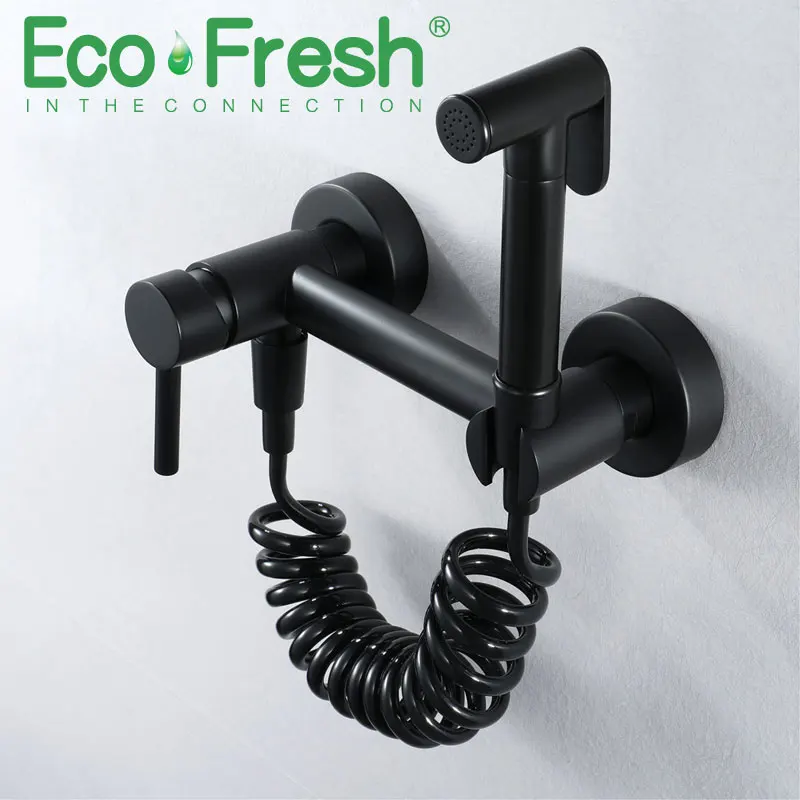 Ecofresh, смеситель для горячей и холодной воды, туалетный набор для биде. Черный настенный смеситель для биде, качественный латунный Смеситель для женщин