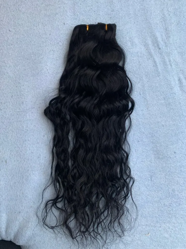 Волосы-это человеческие волосы, очень красивые волнистые :) мне это очень нравится! Закажите 22 ”120 грамм черного цвета, за эту цену вы получите очень хорошее качество волос!