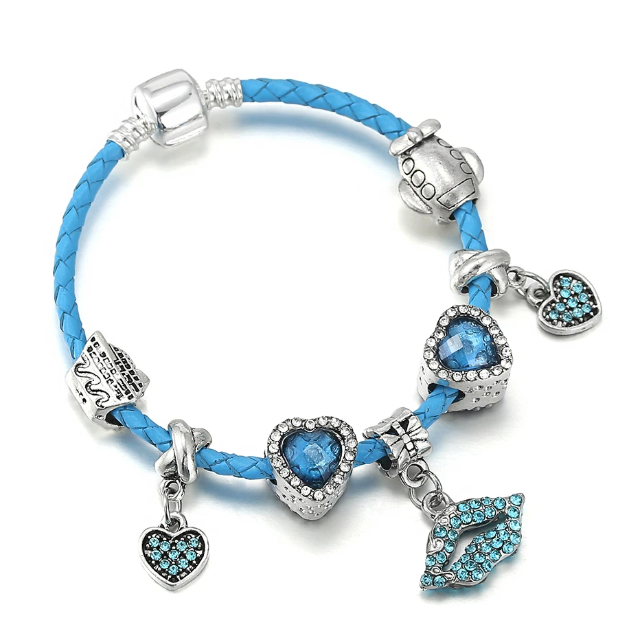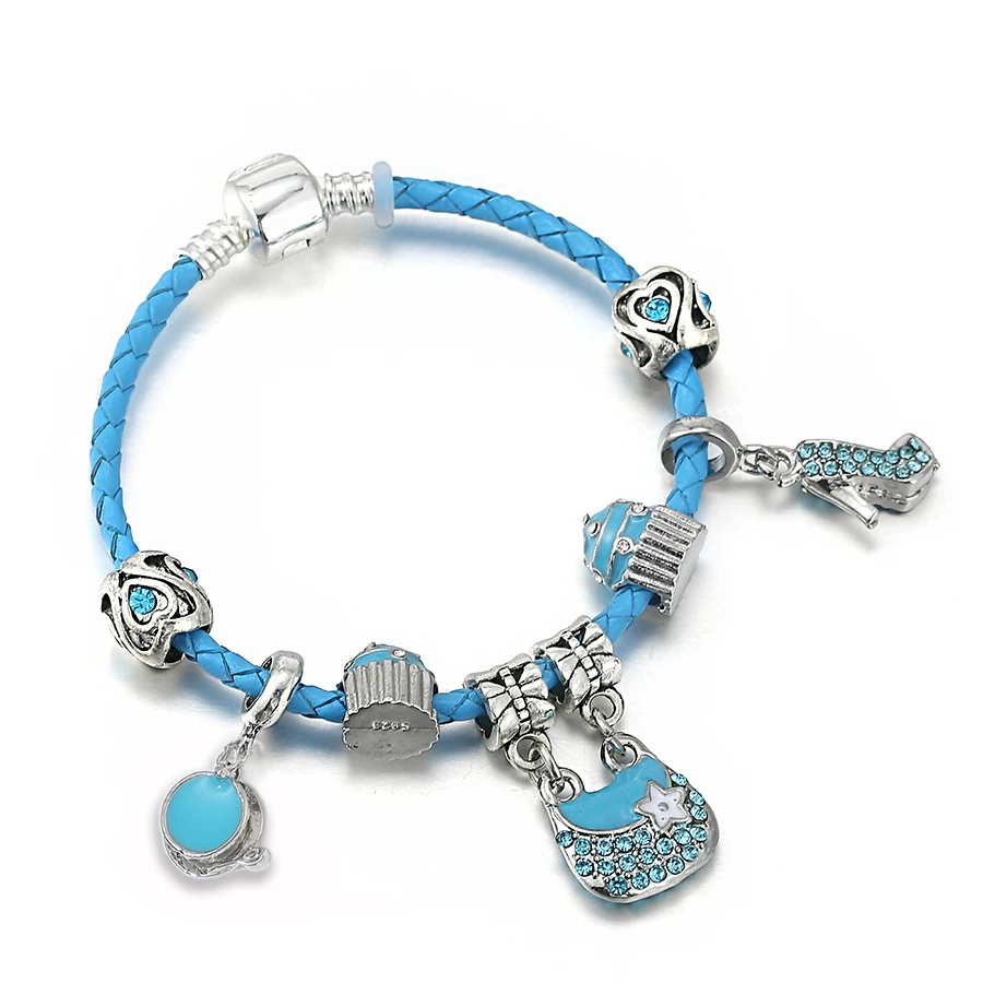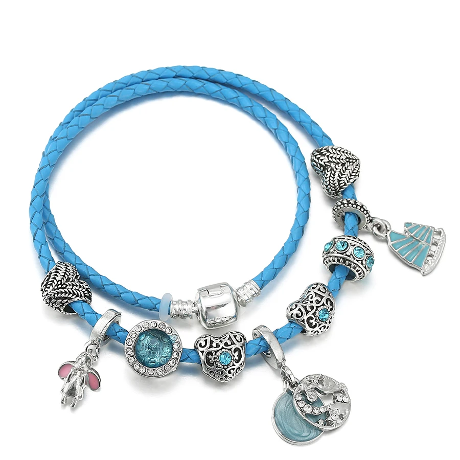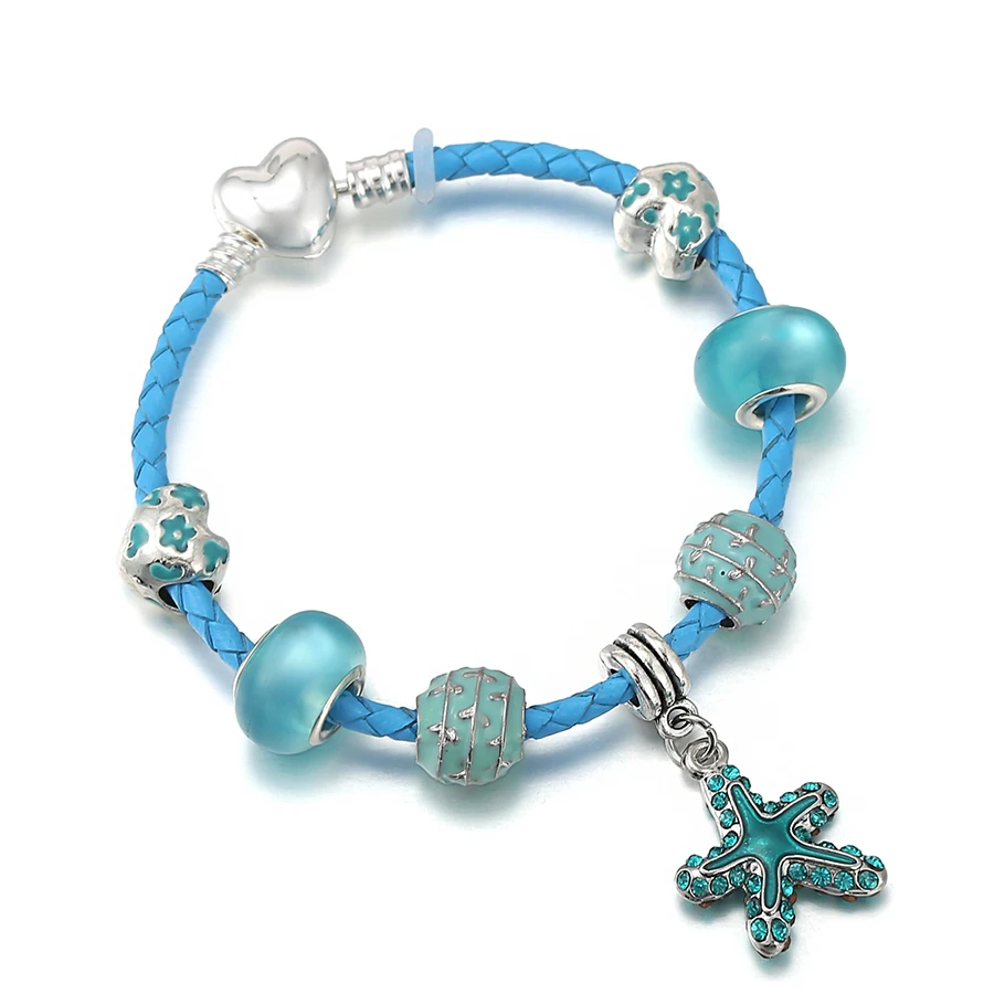 Детский Браслет из натуральной кожи для мальчиков и девочек, браслеты с подвесками в виде морской черепахи, Дельфина, голубого цвета