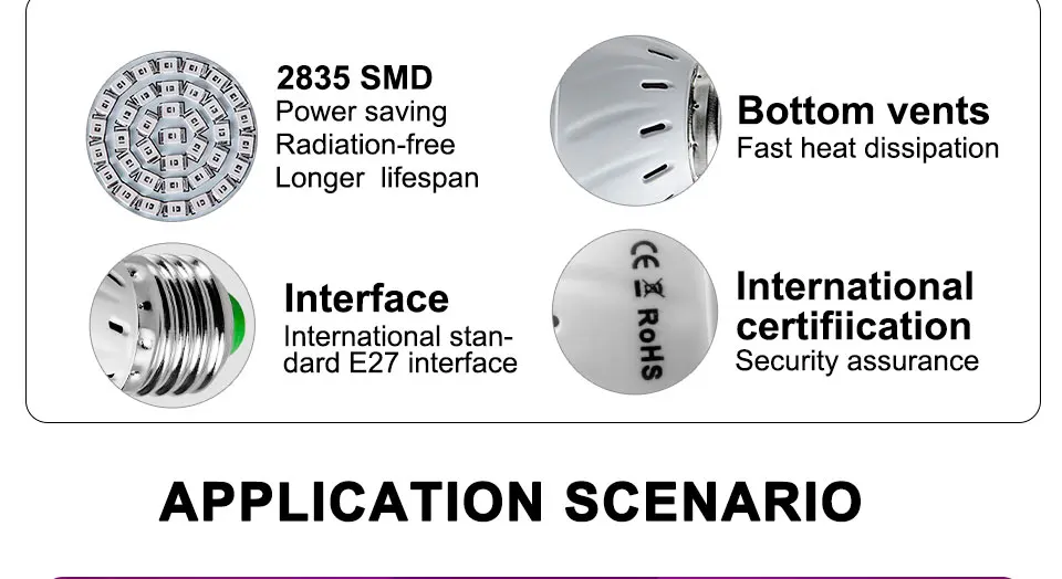Спектральный диапазон влияния на физиологию растений:280 нм ~ 315 нм влияние на морфологические и физиологические процессы минимально315 нм ~ 420нм хлорофилл поглощает меньший эффект удара, предотвращает удлинение ствола420 нм ~ 500 нм (синий) хлорофилл и каротиноиды поглощают самую большую долю, самое большое влияние на фотосинтез500 нм ~ 620нм скорость поглощения красителя не высокая620нм ~ 750нм (красный) Скорость поглощения хлорофилла «Высокая», оказывает значительное влияние на фотосинтез и эффект фотохимидаСкорость поглощения 750нм ~ 1000нм, стимулирует удлинение клеток, воздействие цветения и прорастания семян> 1000 нм преобразуется в калории.Характеристики:Товар: светодиодный светильник для выращиванияСветодиодный чип: 2835SMD EpistarКоличество СВЕТОДИОДНЫЙ: 60 шт.Мощность: 5 ВтПолный спектр: 32 шт. 660nmRed + 9 шт. 630nmRed + 19 шт. 450nmBlueВходное напряжение: ac220вЛюмен: 580lmСрок службы: 10000 часовТип цоколя: E27