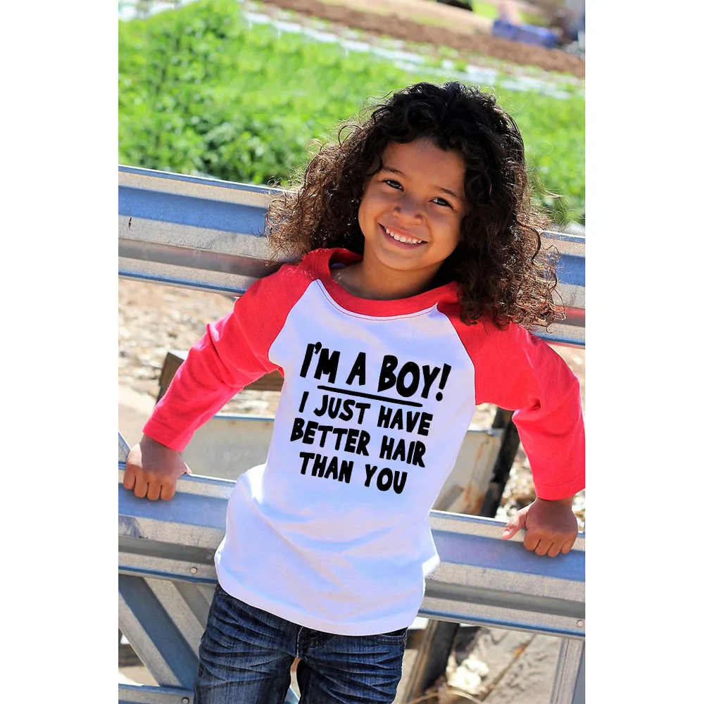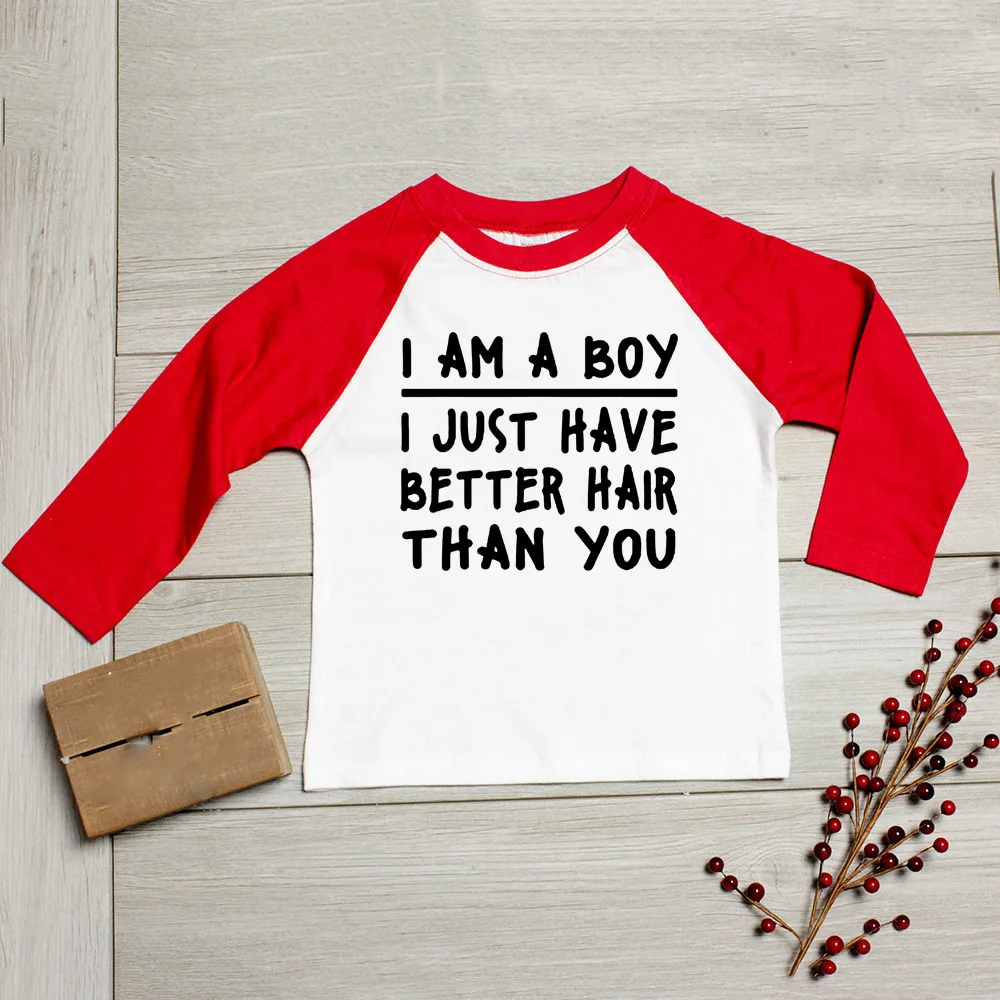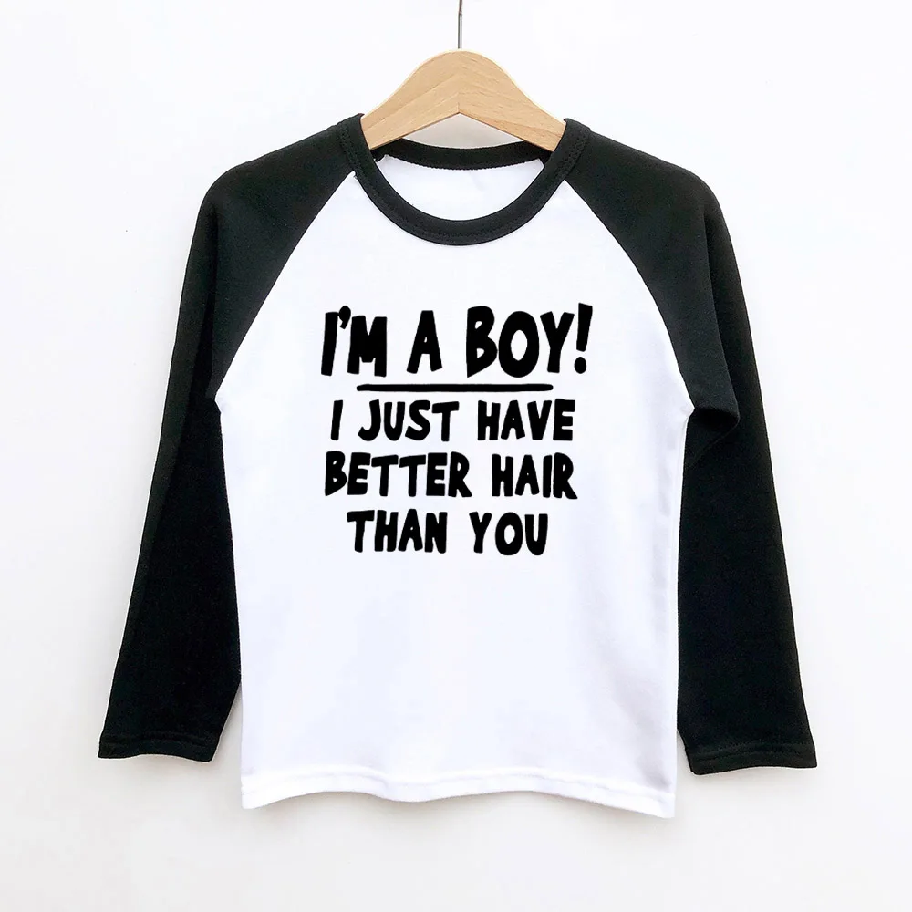I'm A Boy I Just Hair Better Than You, Осенняя детская футболка с длинными рукавами 2020, детская одежда ralgan, футболка