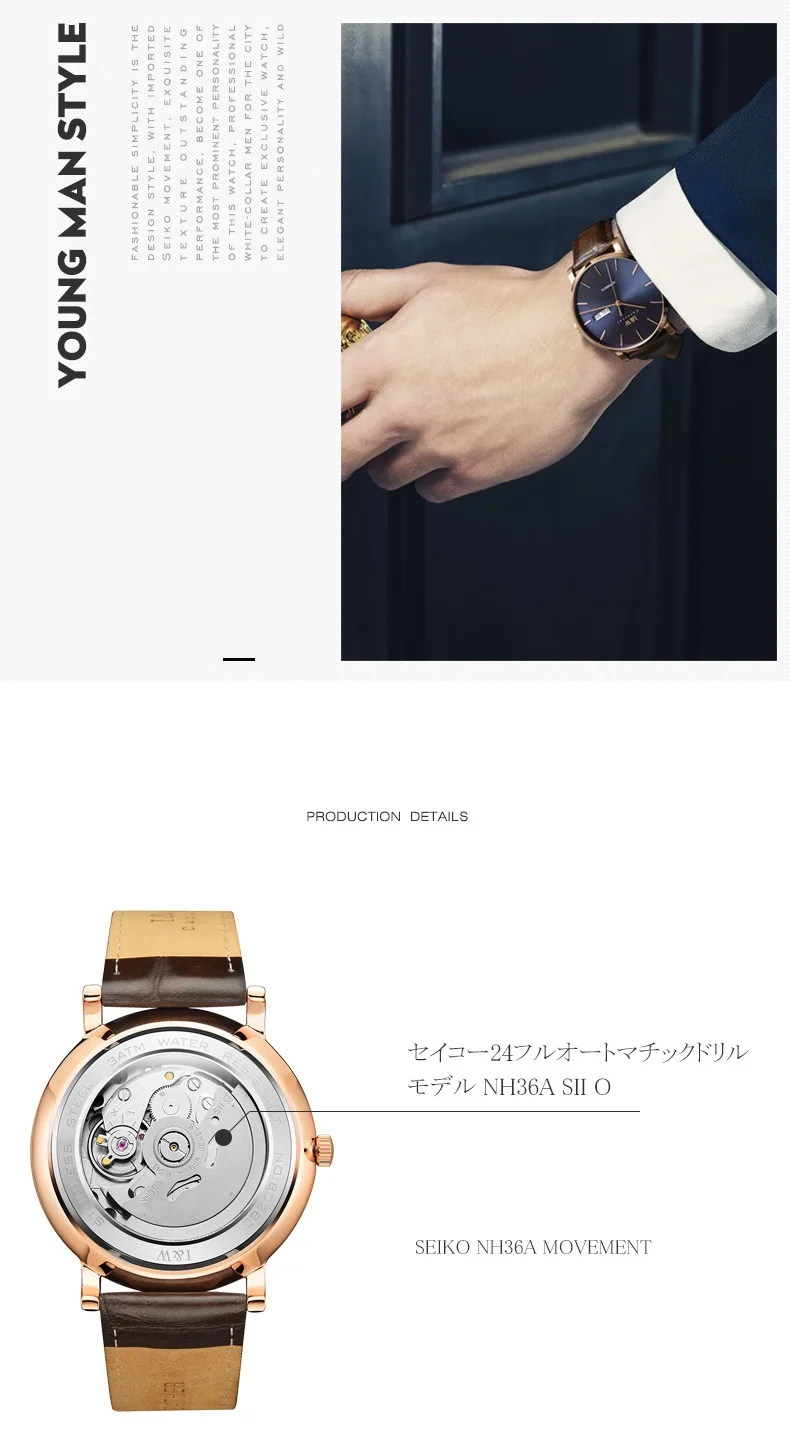 Японские мужские часы NH36A s 2020 I W, деловые автоматические мех...