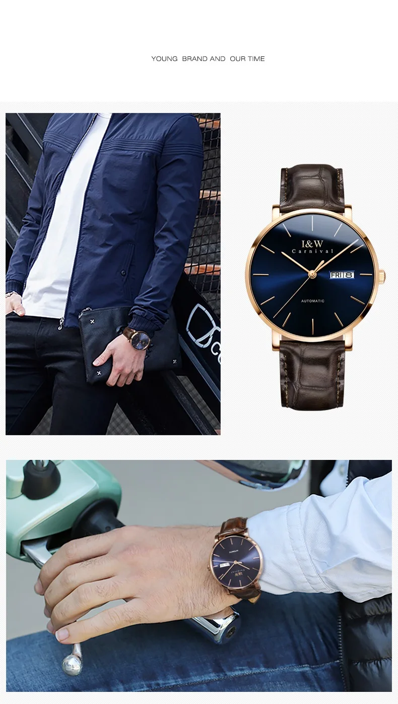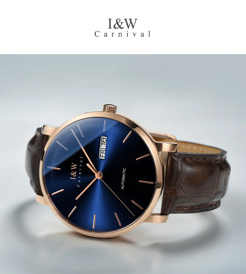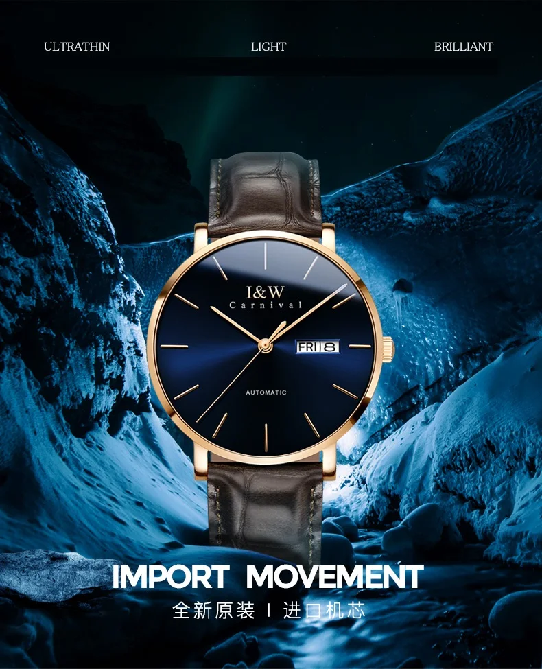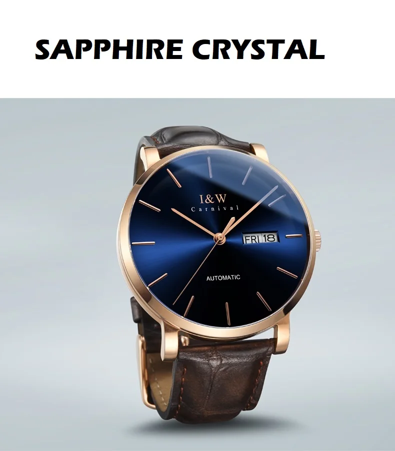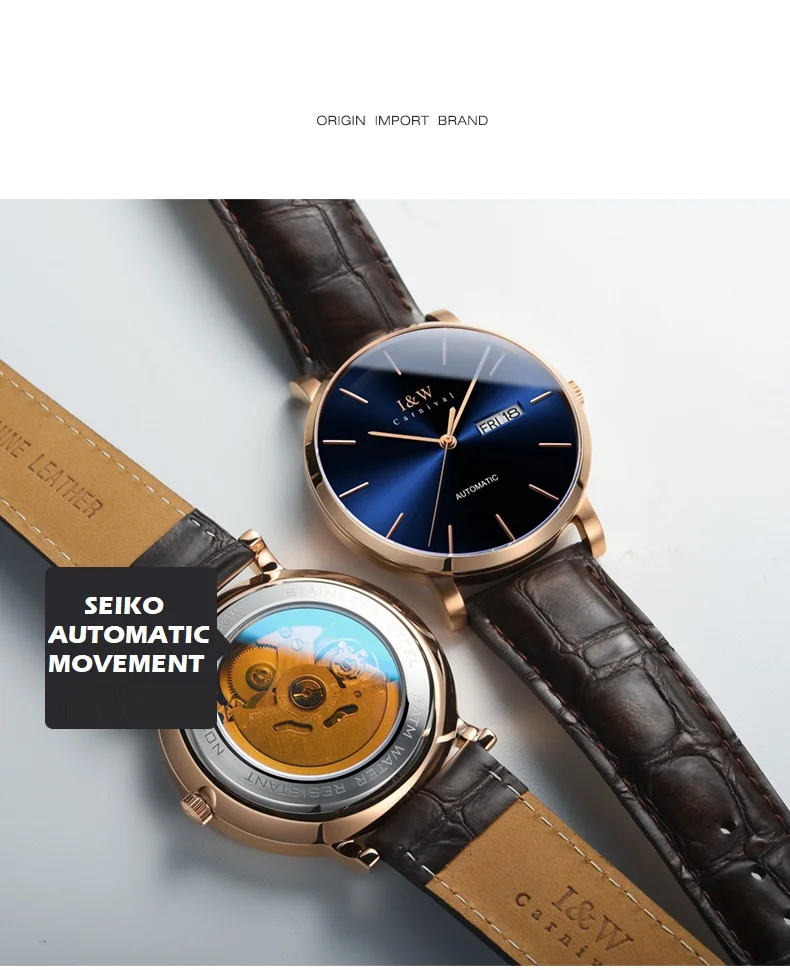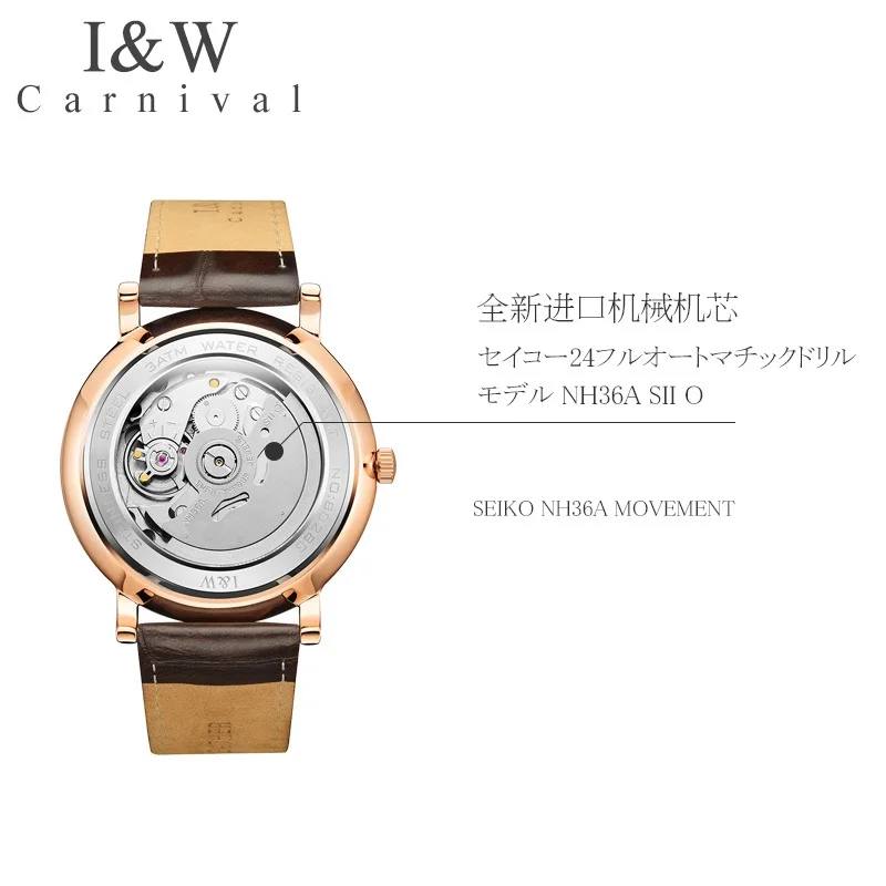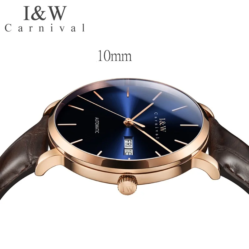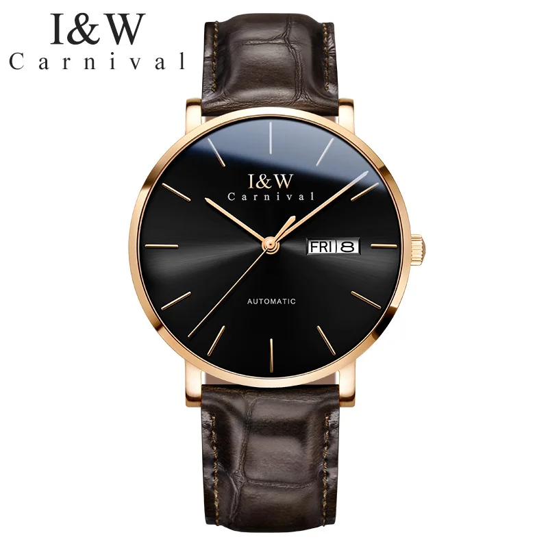 Оригинальные Мужские автоматические наручные часы Carnival I W, японские часы Seiko с механическим механизмом, ультратонкие деловые часы, мужские часы