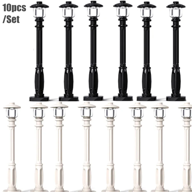 10 шт.компл. уличные дорожные светильники, строительные блоки, игрушки для детей, набор сделай сам MOC, совместимые классические городские светильники
