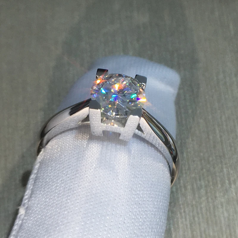 Креативное дизайнерское кольцо из белого золота 14 к HW с английским алфавитом и 4 когтями, круглое ограненное кольцо из моиссанита, обручальное кольцо на годовщину