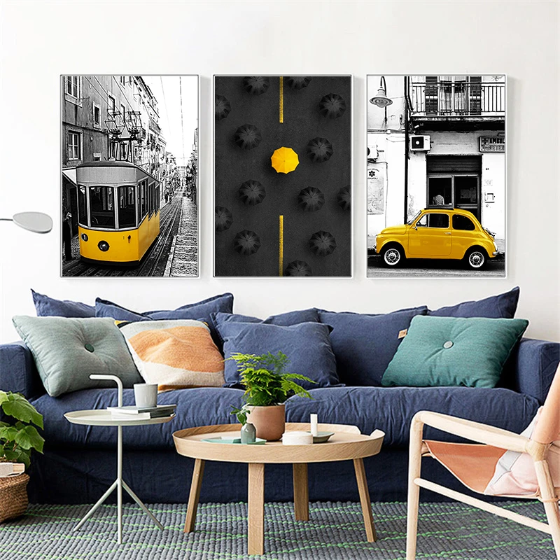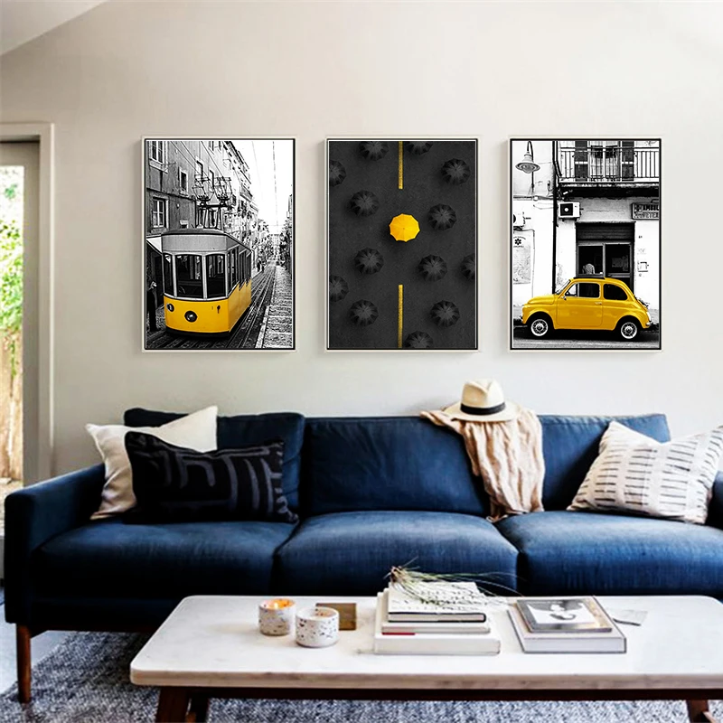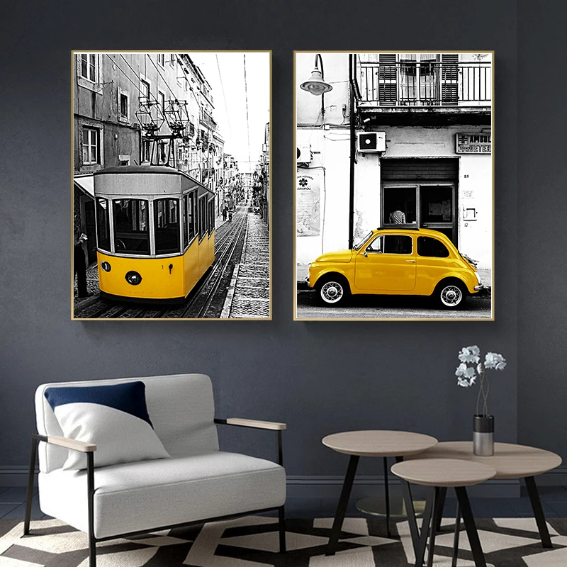 Настенная Картина на холсте Лондонский город желтая дорога ТРАМ скандинавские плакаты и принты винтажные настенные картины для декора гостиной