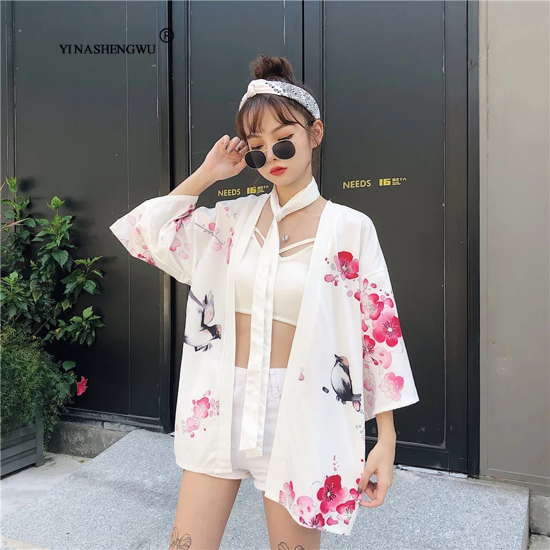 Кимоно женское, пальто, 14 видов стилей, с принтом Kawaii, журавль, косплей, юката, Харадзюку, рубашки, Япония, женский, хаори, японский кардиган