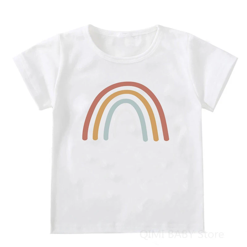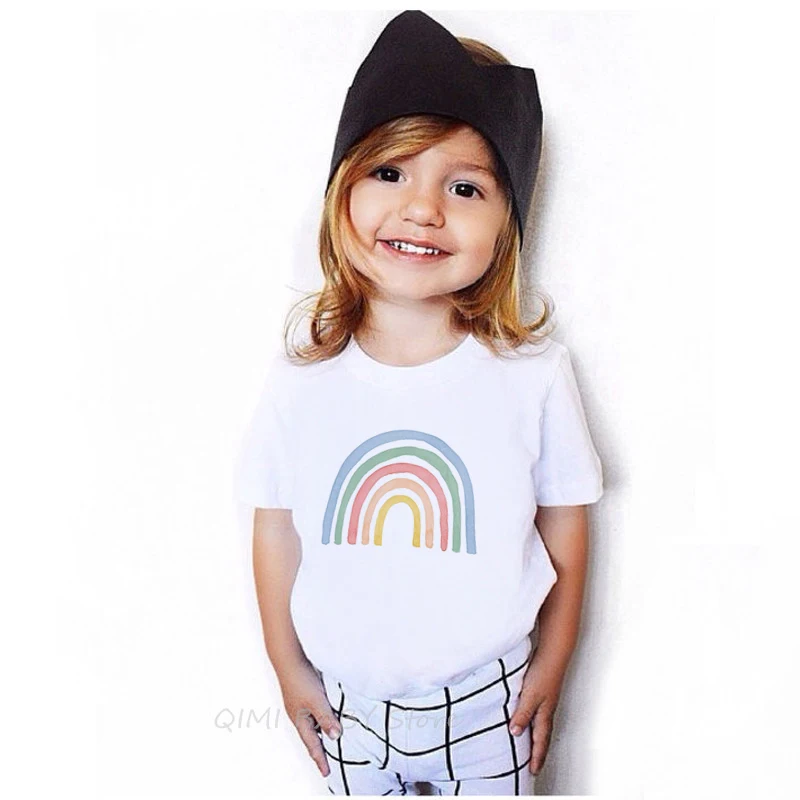 От 1 до 12 лет повседневные Стиль Детская летняя футболка белого цвета с короткими рукавами для малышей; Футболка разноцветной футболки с принтом для мальчиков и девочек; Стильная одежда