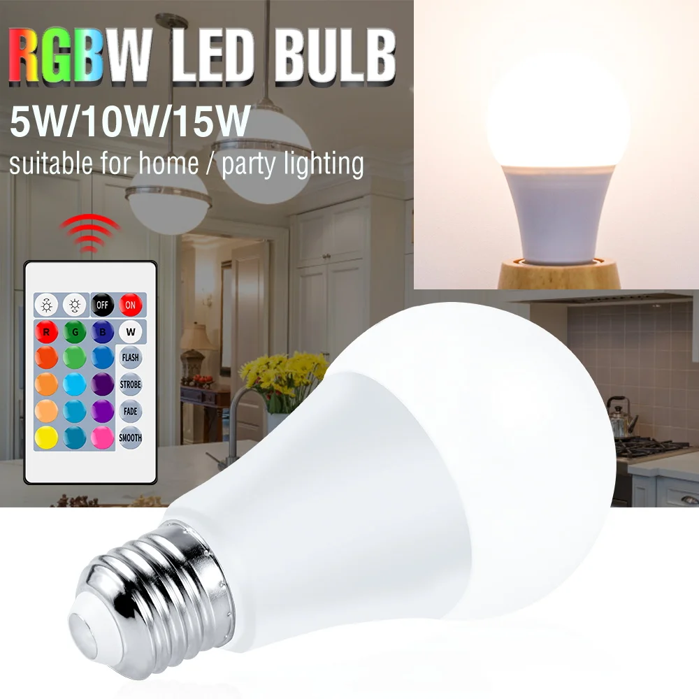 Светодиодная лампа с изменением цвета, 220 В, светодиодная лампочка E27 RGBW, волшебная лампа 5 Вт, 10 Вт, 15 Вт, светодиодные лампочки RGB с умным управлением, 110 В, 16 цветов, лампа