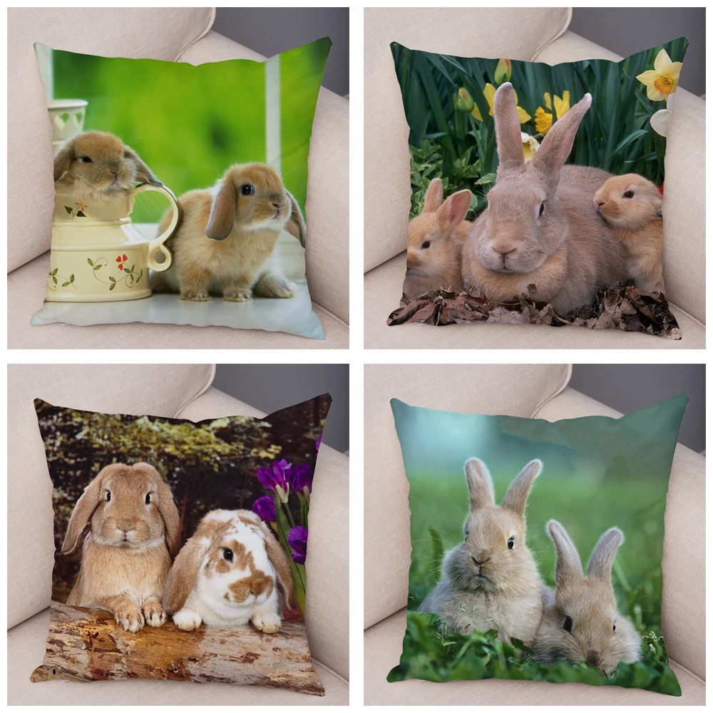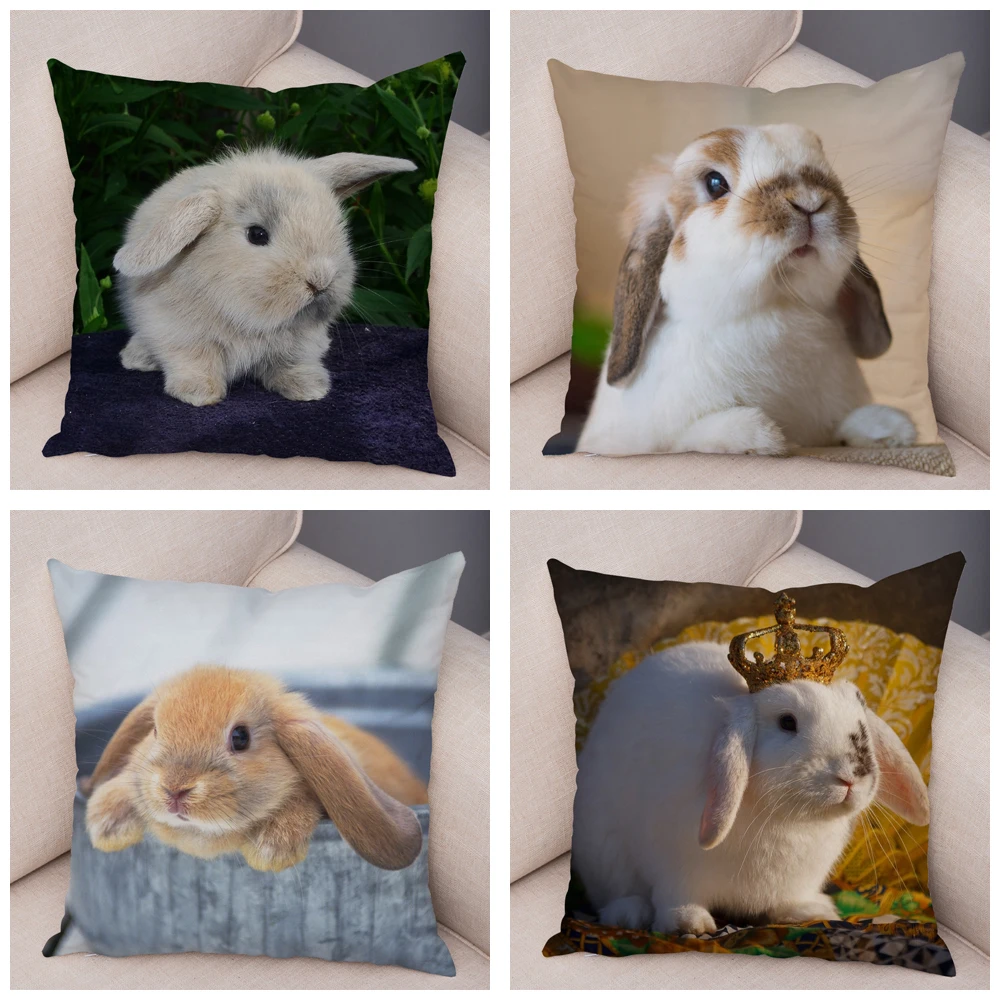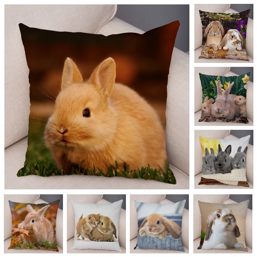 Милый кролик, чехол для подушки, чехол для дивана, автомобиля, домашнего декора, наволочка для домашних животных, хлопковая короткая плюшевая подушка 45x45 см