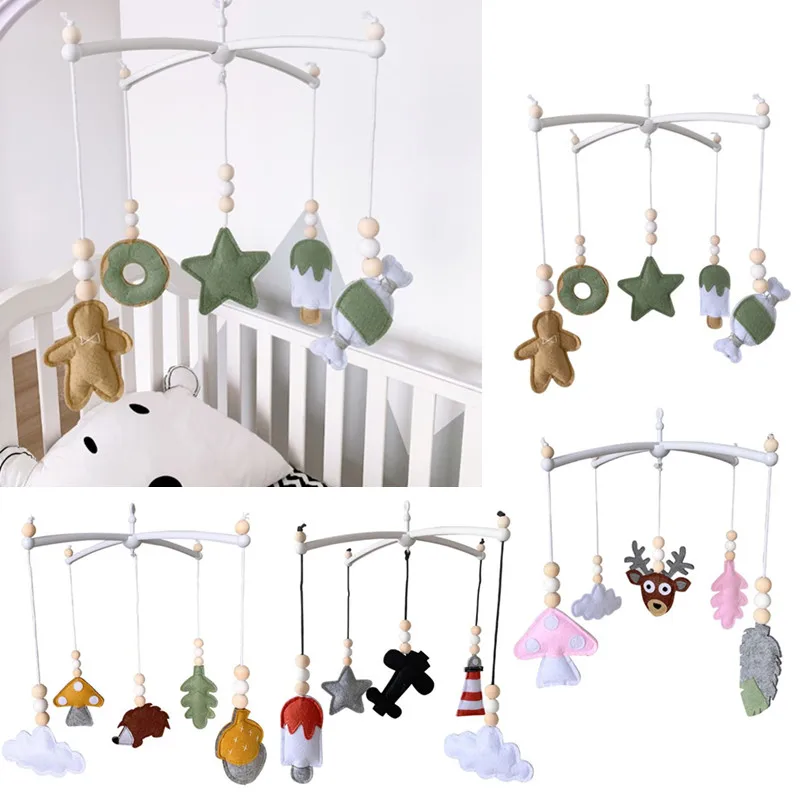 Мобиль для детской кроватки, погремушка, фетровая колокольчик с подвеской, Колокольчик для кровати, игрушки, подвесное украшение для детской комнаты