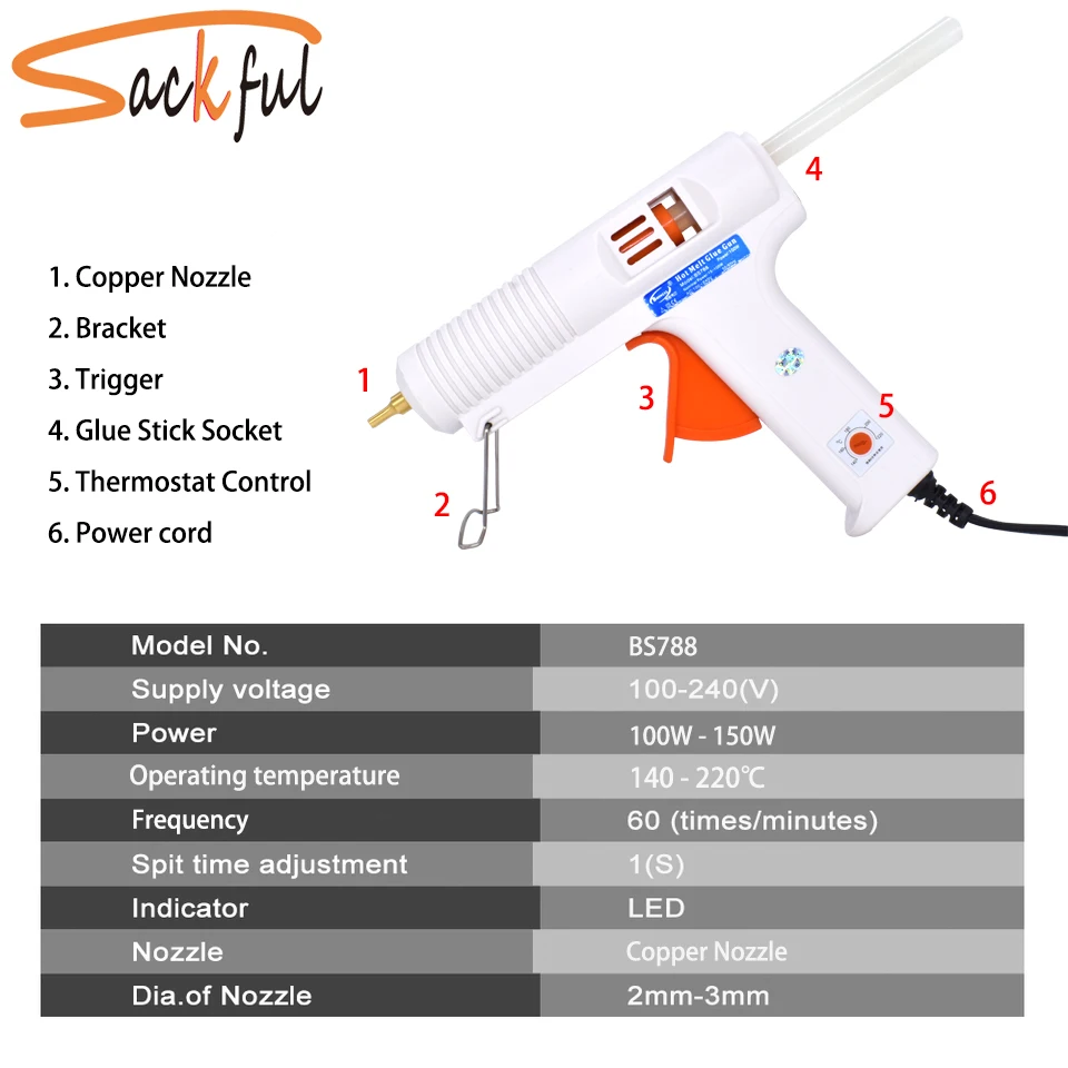 Медный термоклеевой пистолет Baysense store, 150 Вт, с силиконовым стержнем 11 мм для контроля температуры нагрева
