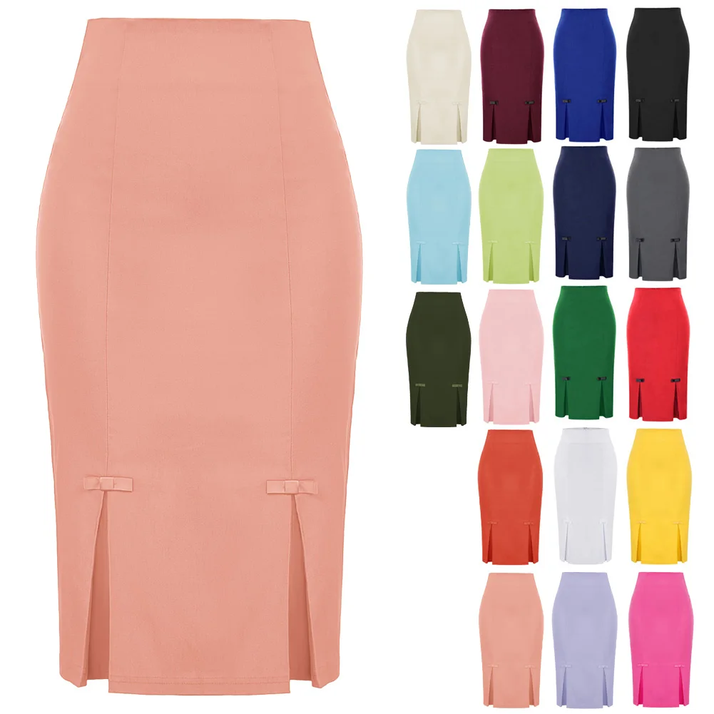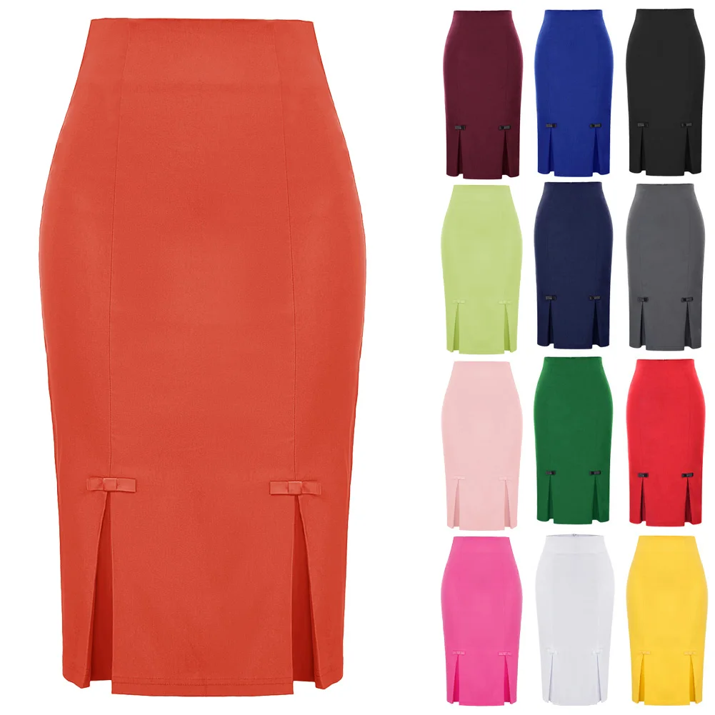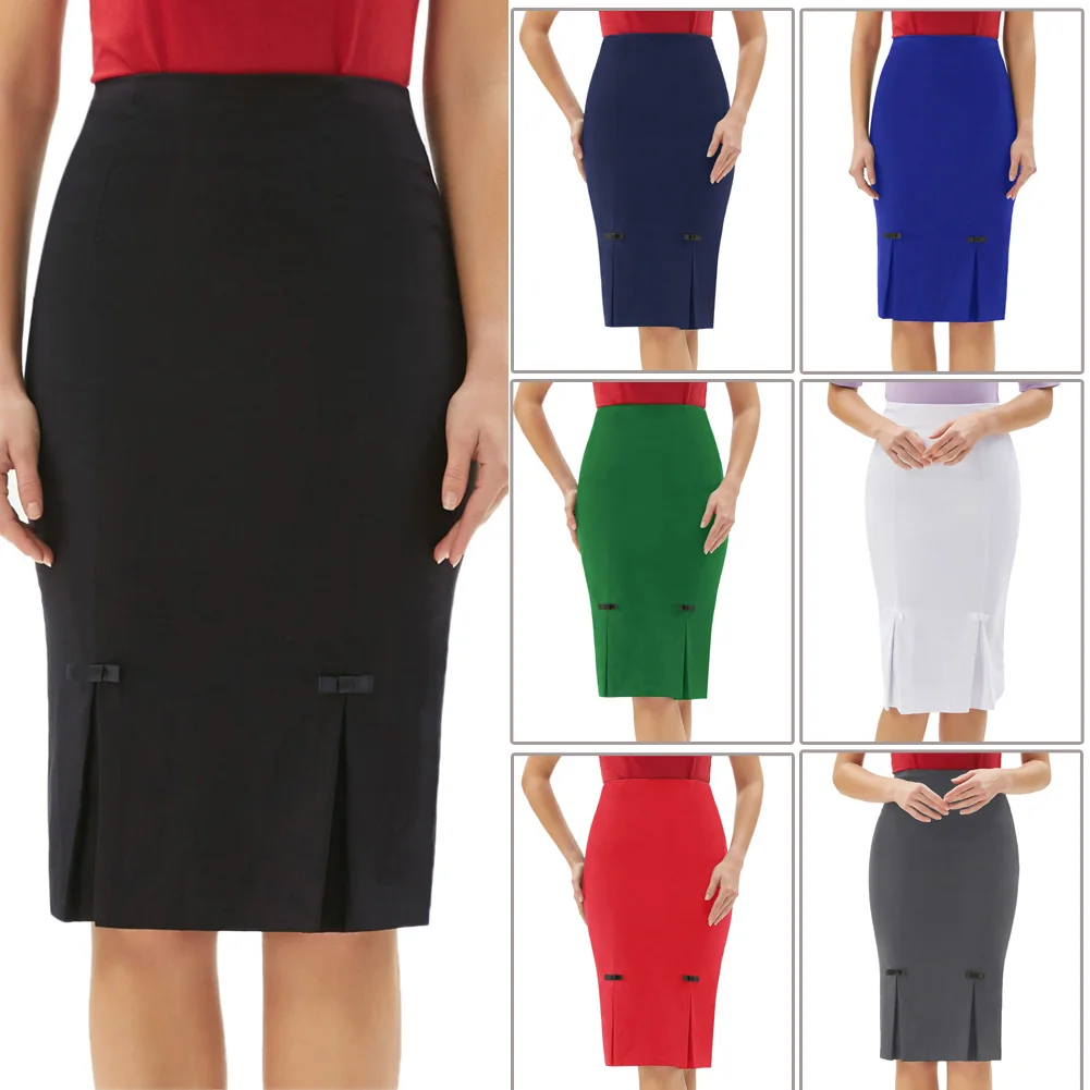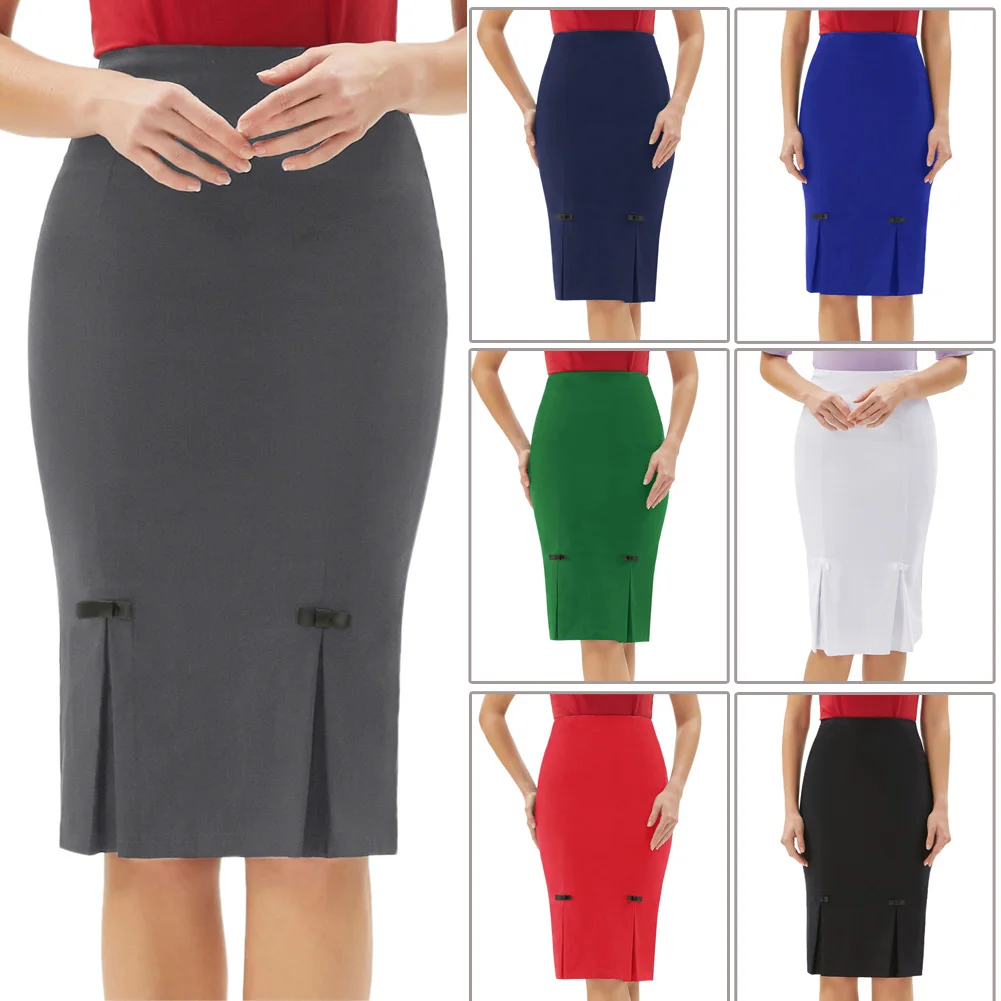 Женская облегающая юбка-карандаш с бантом, в офисном стиле