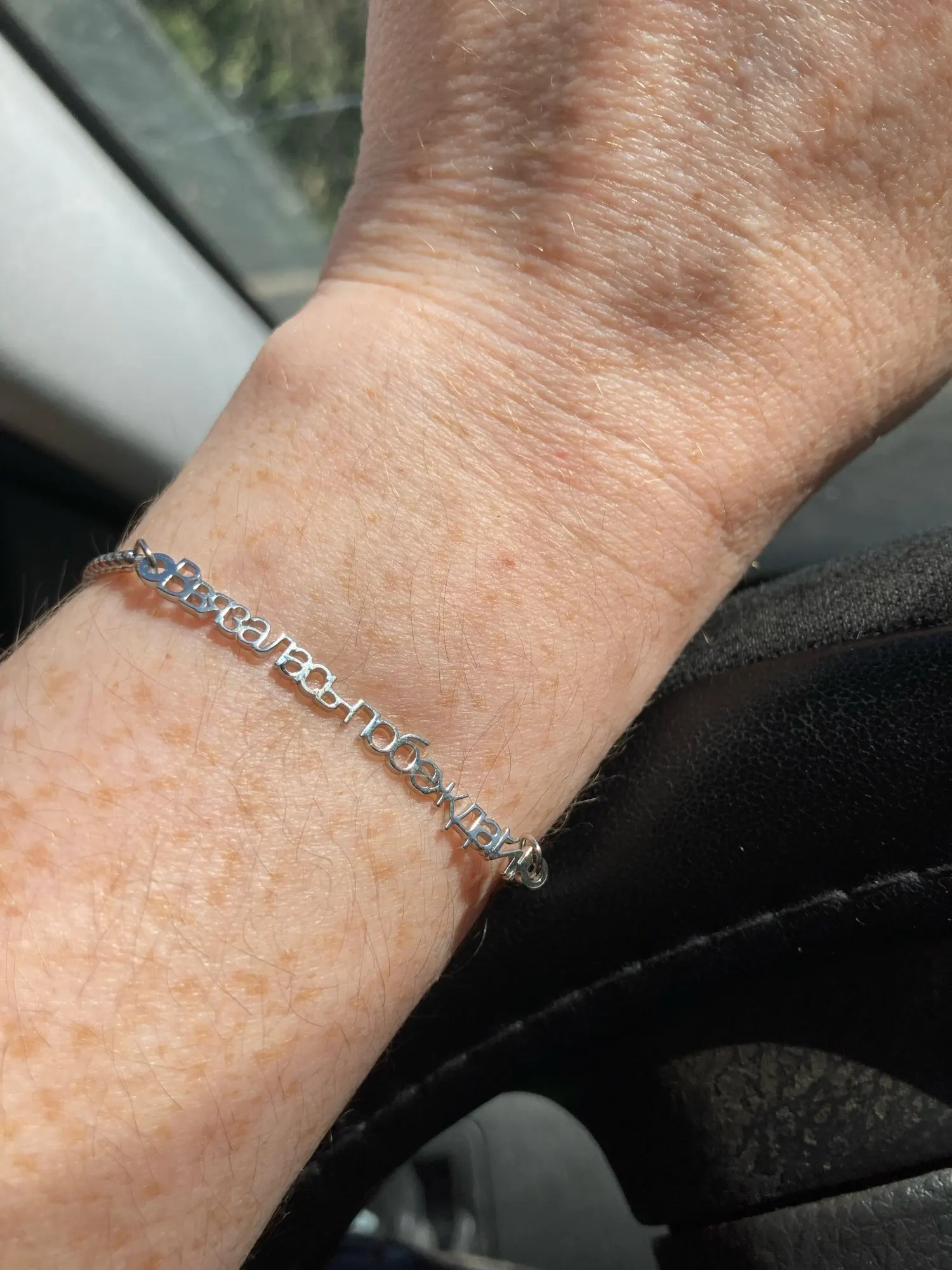 Очень точное описание. Крайне долго отправлял товар. Пришло обычным письмом. Браслет изящный, надпись выполнена без ошибок.