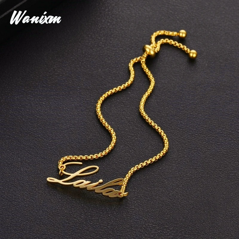 Wanixm индивидуальное имя браслет для женщин Золотая Нержавеющая сталь Регулируемая стрейч Арабская буква персонализированные браслеты Ювелирные изделия Подарки