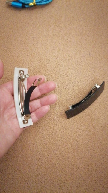 Заколка пришла не та что на фото, маленького размера. Сама заколка оказалась кривая, не ровно приклеенная- выкинула