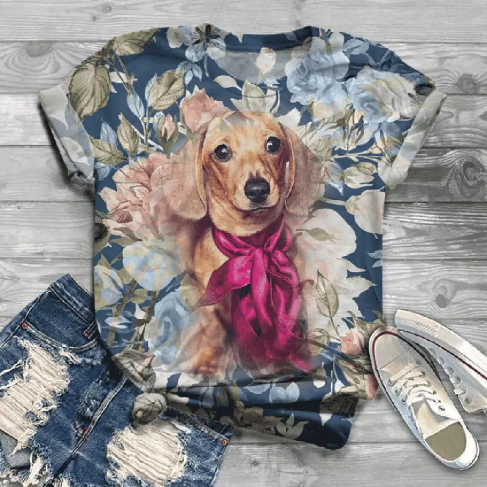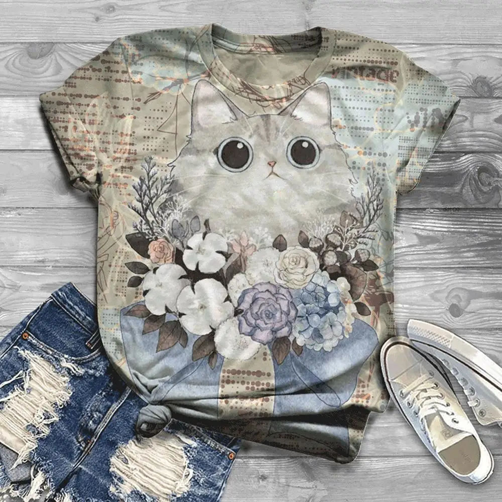 Женская футболка с коротким рукавом, круглым вырезом и 3D-принтом