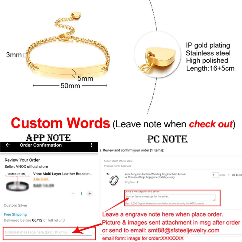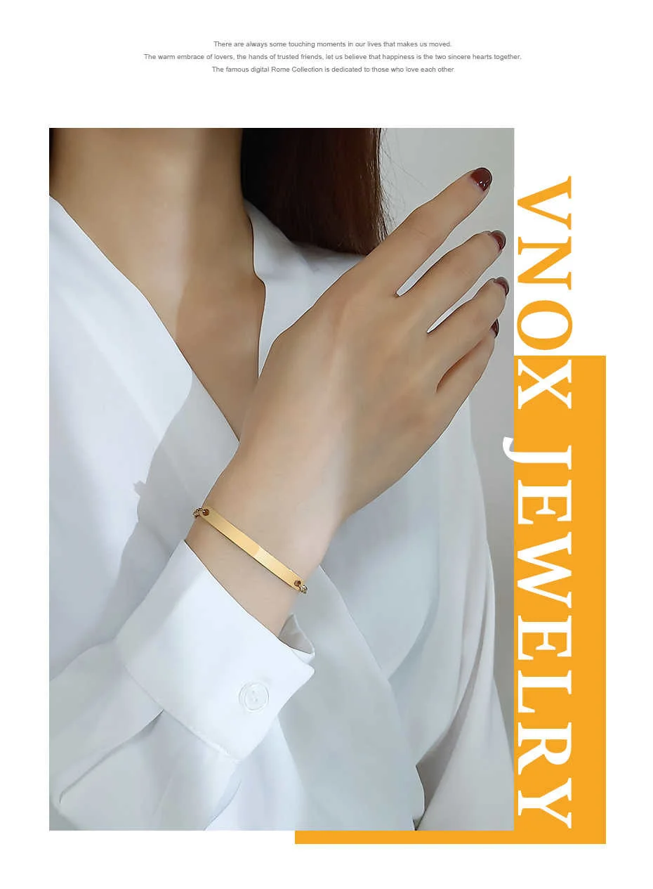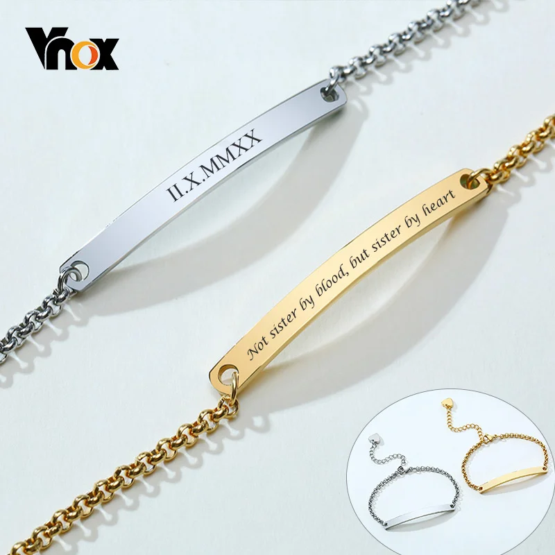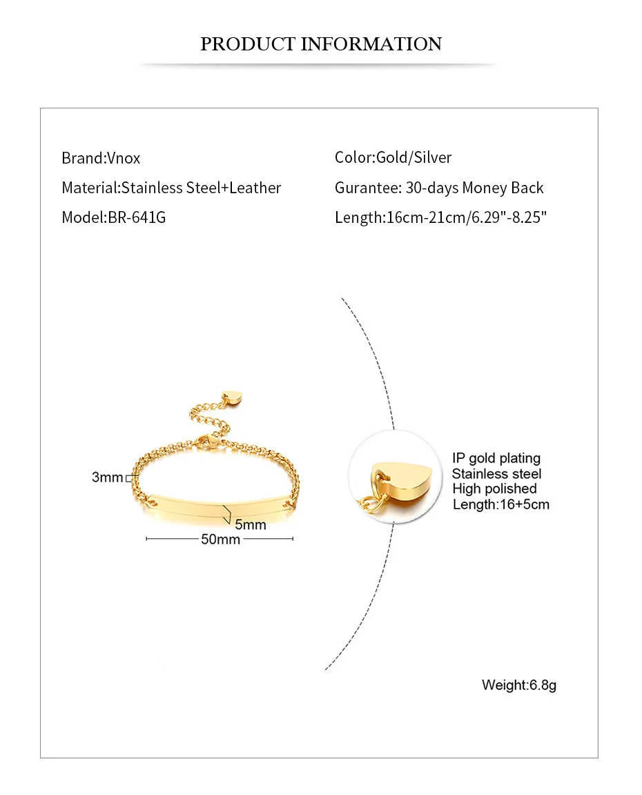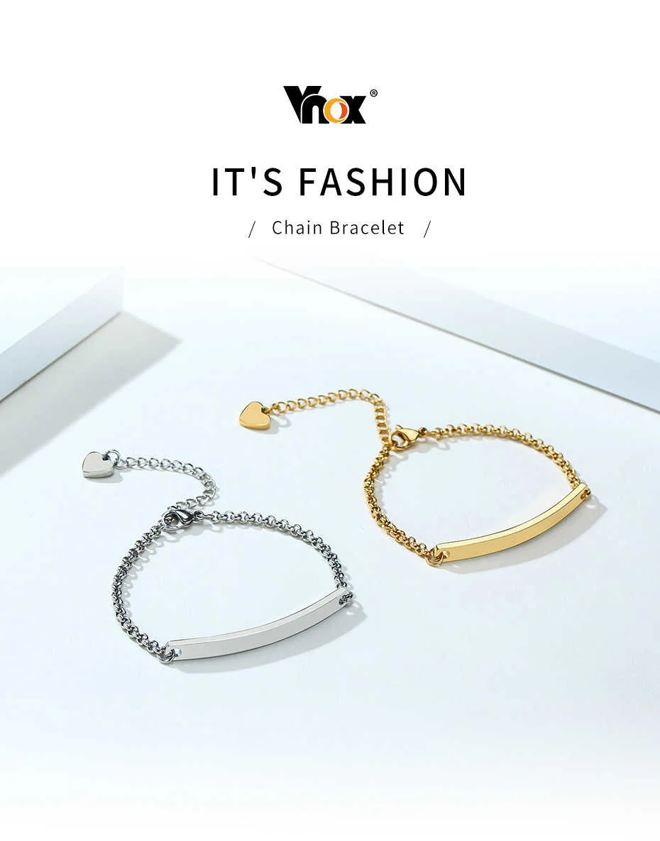 Vnox Cusmotize браслеты для женщин персонализированный Гравированный браслет из нержавеющей стали простой элегантный женский шарм в виде сердца ювелирные изделия BFFGift