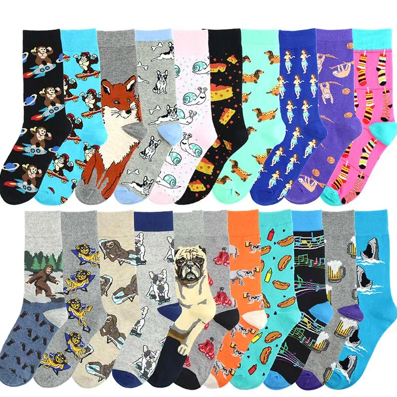 Носки в стиле Харадзюку С Изображением Животных, семейных счастливых смешные мужские носки, креативных пивных хот-догов, сыра, унисекс носки, смешные носки в стиле хип-хоп