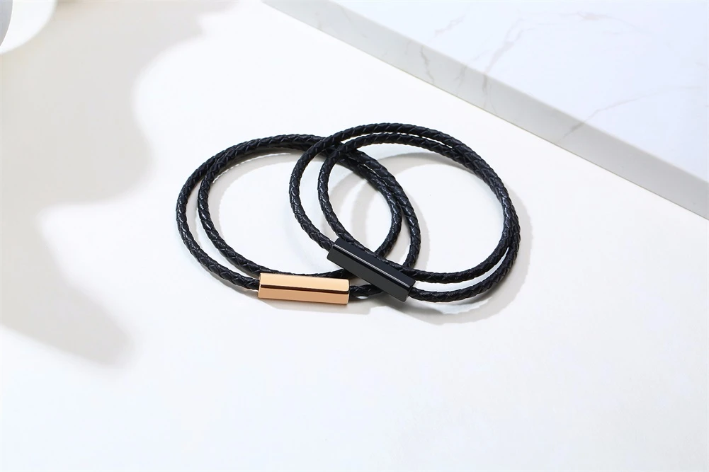 Наш плетеный браслет Кожаная двойная упаковка из нержавеющей стали