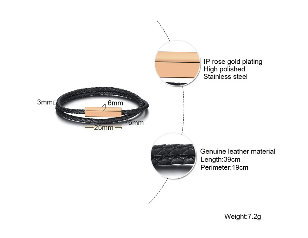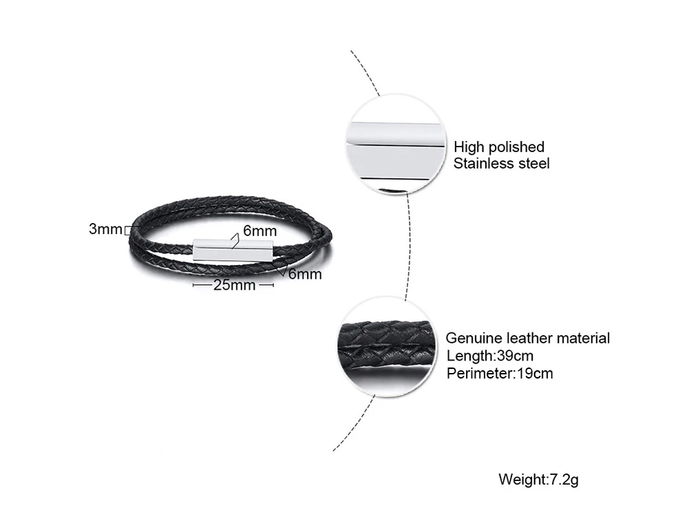 Мужской браслет из нержавеющей стали, с гравировкой, Кожаная двойная упаковка