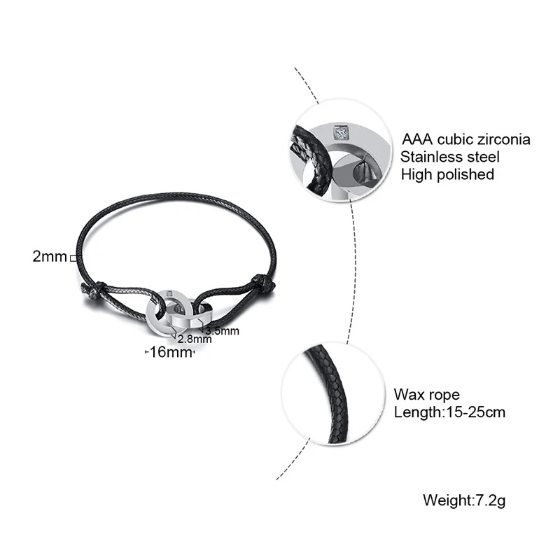 Мужскойженский браслет с шармами Vnox, Черный Повседневный браслет с регулируемой длиной и гравировкой имени под заказ