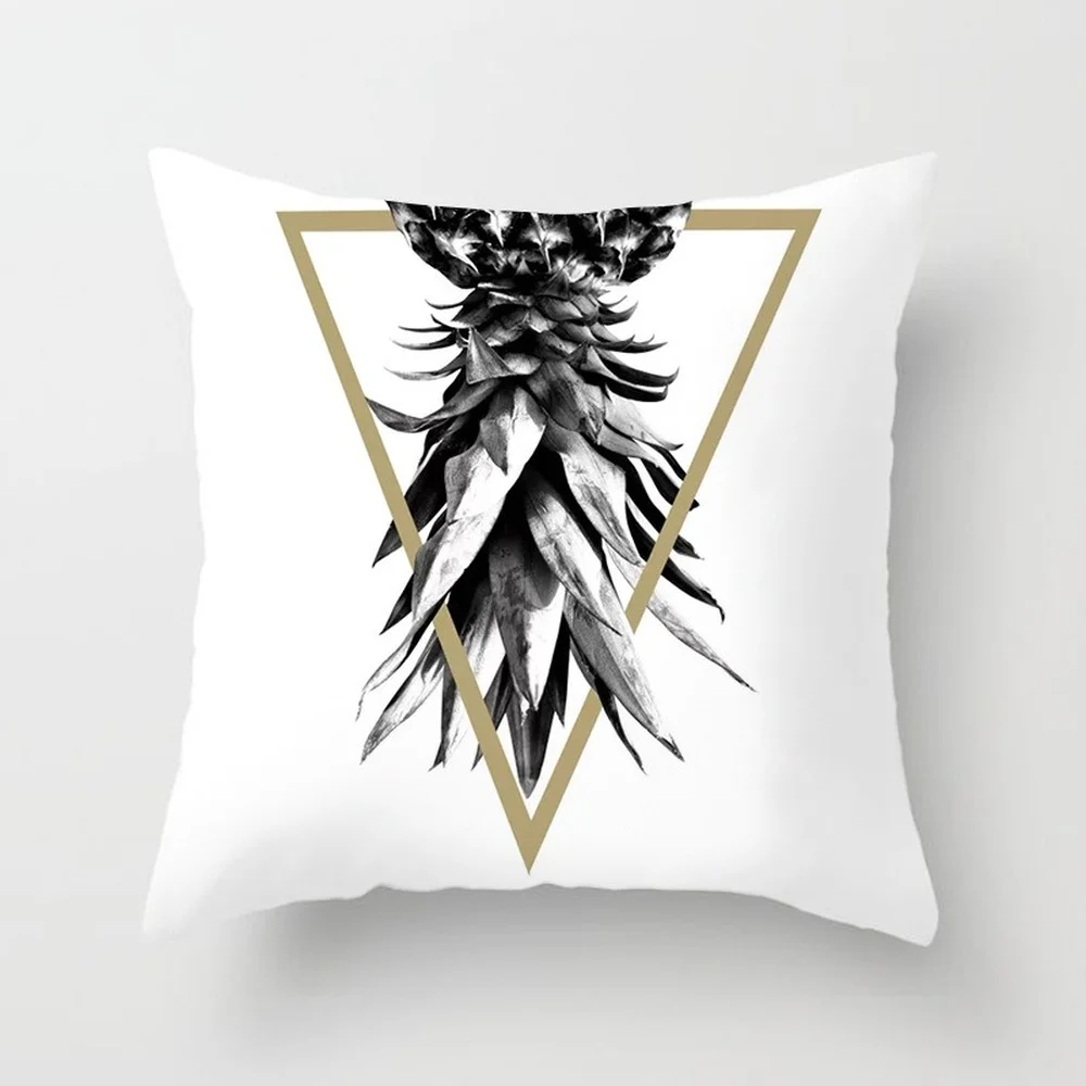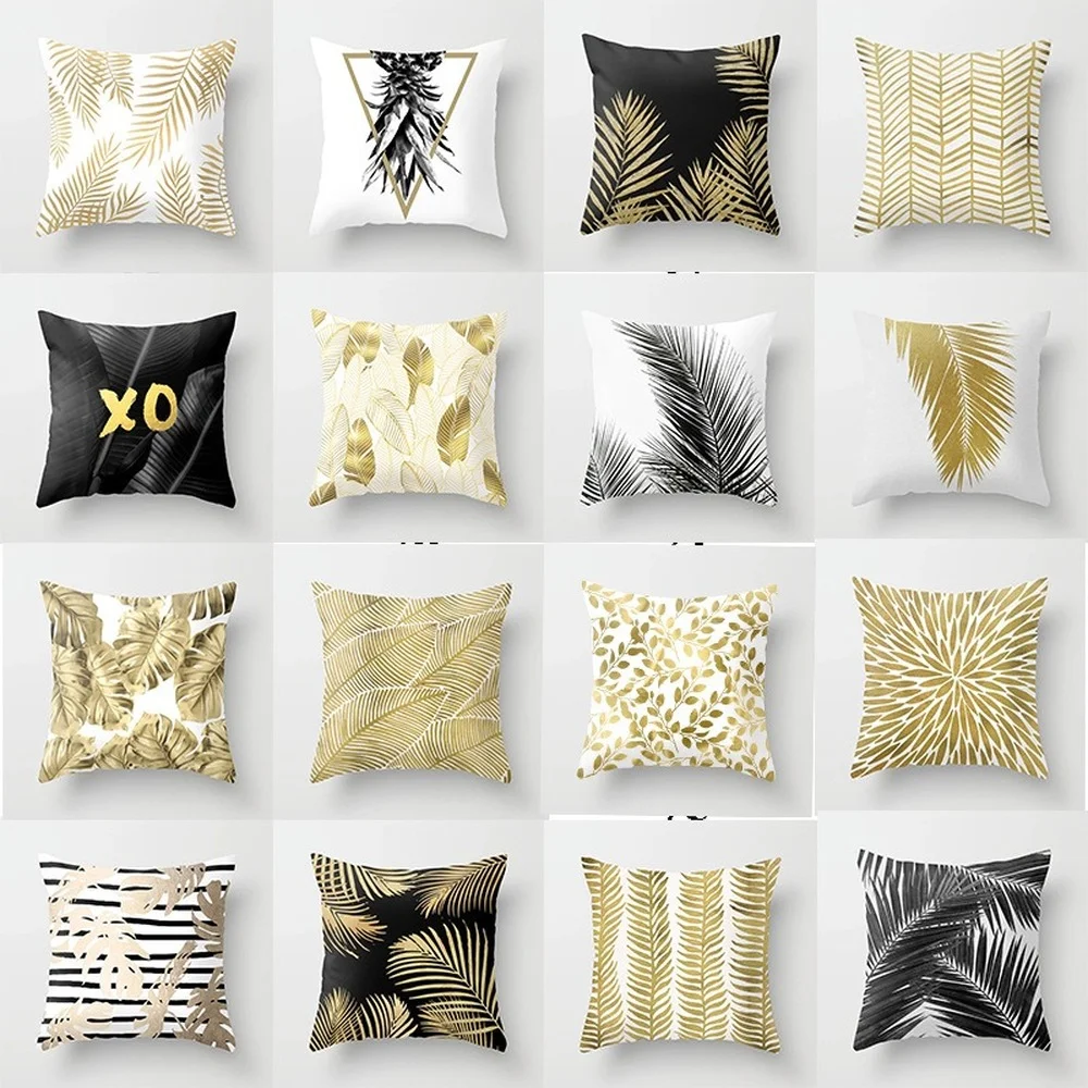 Наволочка для подушки, с золотыми листьями, черно-белая, украшение ...