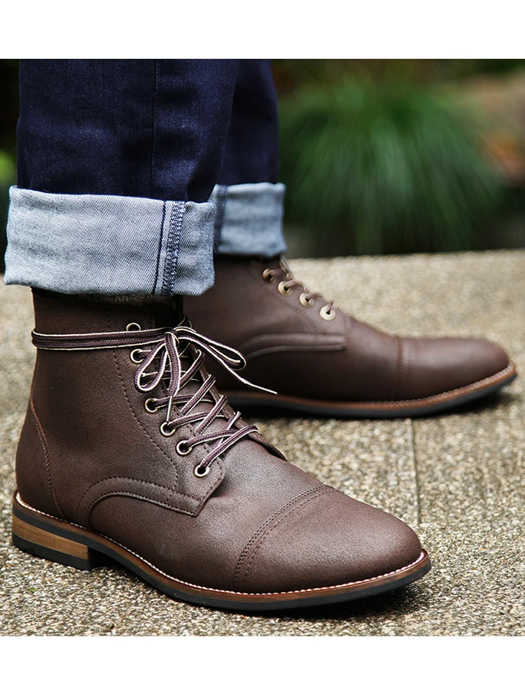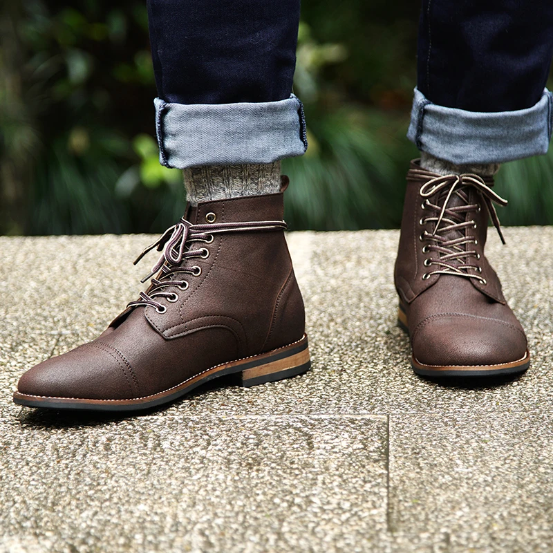 2020 Новые мужские ботинки из искусственной кожи на шнуровке мужская обувь модные высококачественные Мужские Винтажные ботинки в британском стиле в стиле милитари осень-зима размера плюс