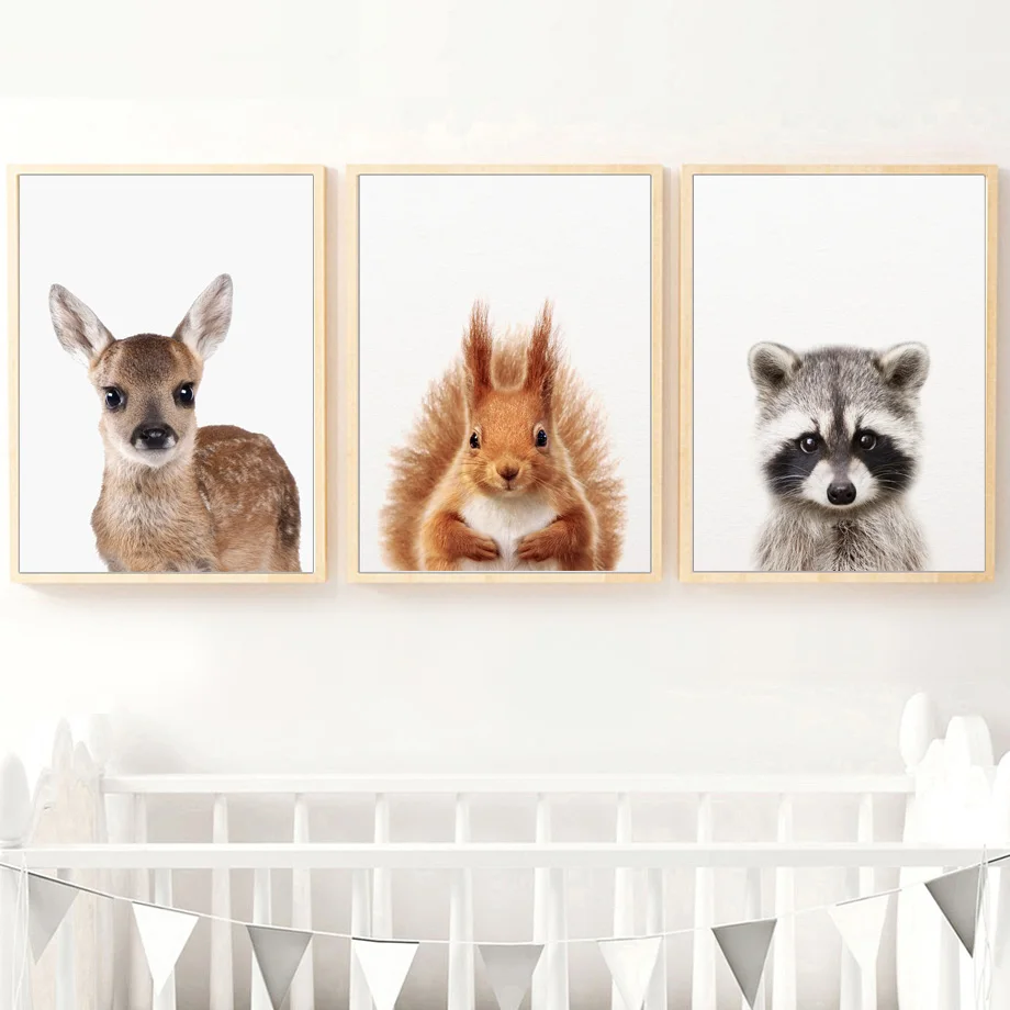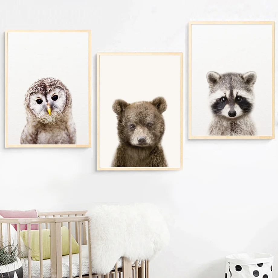 Милый медведь, кролик, Сова, енот, белка, скандинавские плакаты и принты, Настенная картина, искусство на холсте, искусство, декор детской комнаты