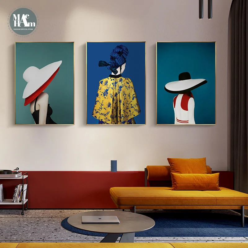 Модный современный персонаж, носящий шляпу, Картина на холсте, плакат абстрактного искусства, Настенная картина для декора гостиной
