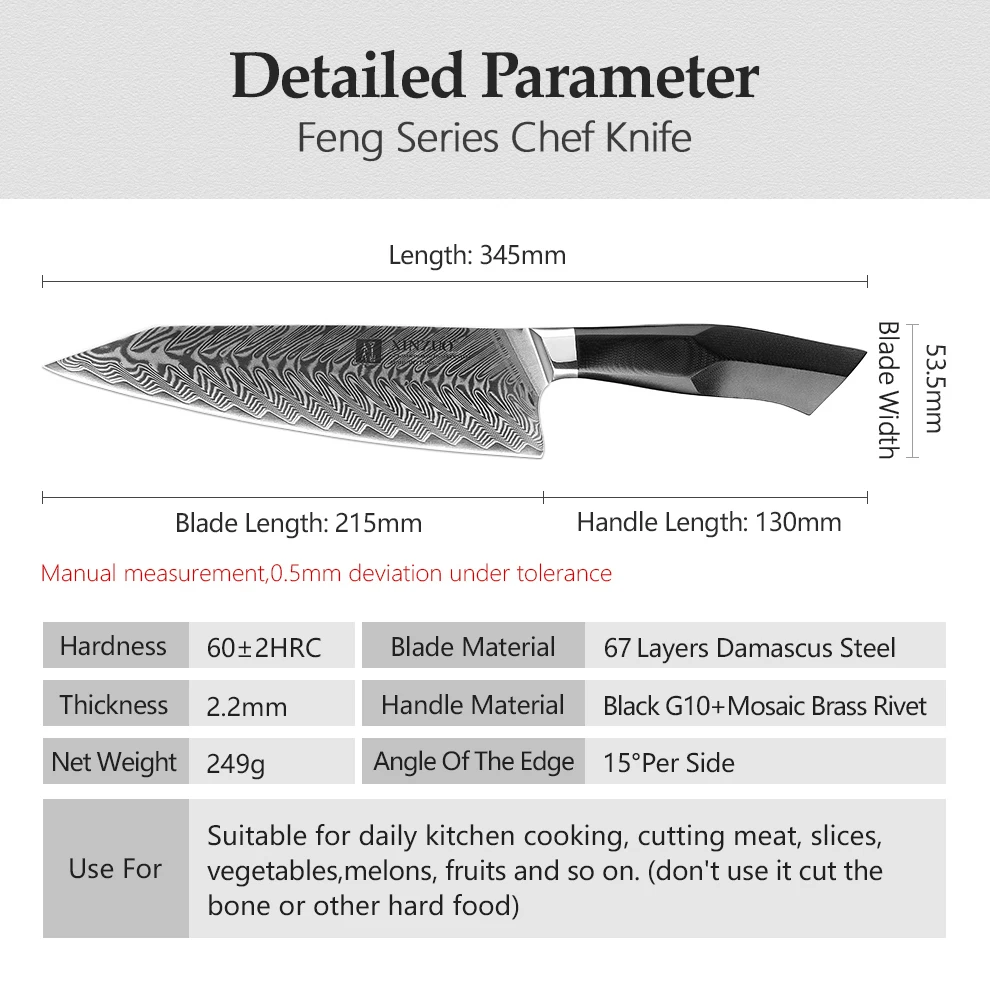 Серия XINZUO Feng нож шеф-повара из дамасской сталиТовар:8,5 дюймовый шеф-нож