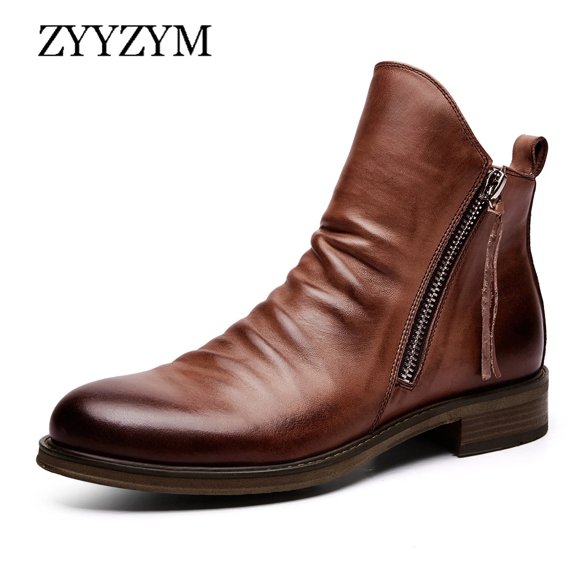 ZYYZYMмужские кожаные ботинки на молнии; Новое поступление осени 2020 года; Ботильоны челси в винтажном стиле; Мужская обувь; Zapatos De Hombre