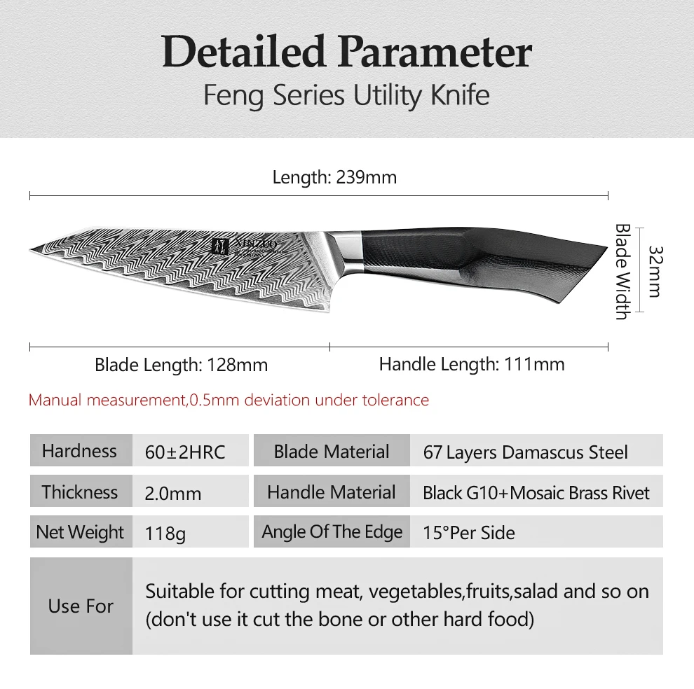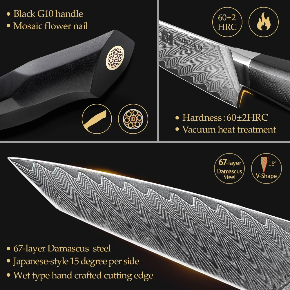 XINZUO 5 ''нож 67 слоев Дамаск VG10 сталь черный G10 и мозаика латунь заклепочная рукоять Newarrive кухонные фруктовые ножи