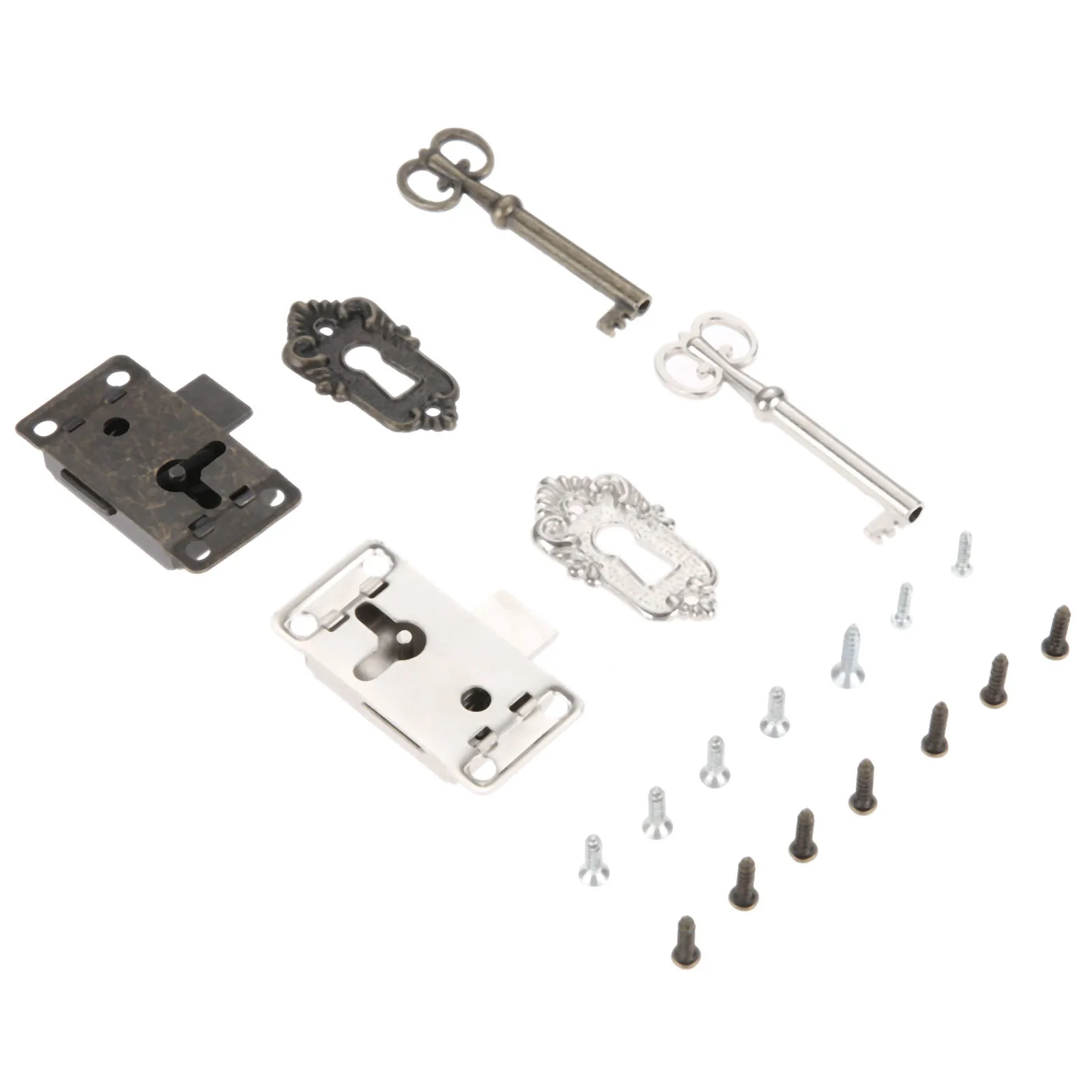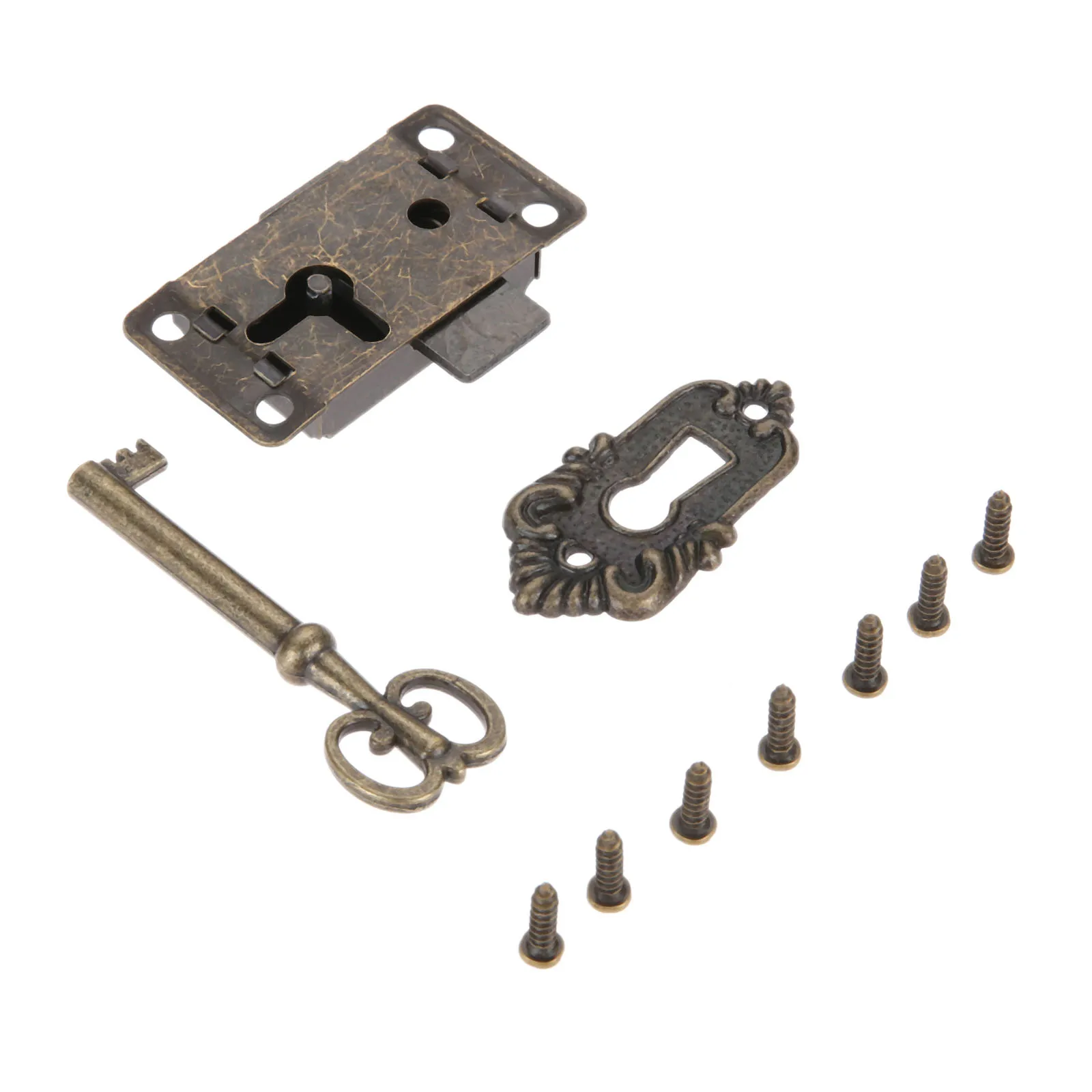 1 комплект, железные античные дверные замки, ящик для дома, деревянная шкатулка для украшений шкафчик, гардероб, буфет, дверной замок с ключом, мебельная фурнитура