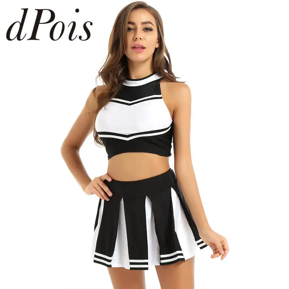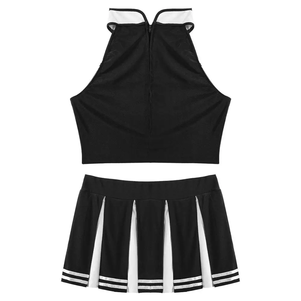 Женский костюм черлидера из 2 предметов, костюм черлидера, униформа Черлидинга, наряд для школьниц, укороченный топ без рукавов с мини-плиссированной юбкой