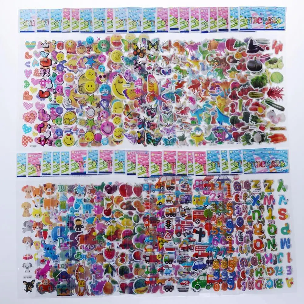 Наклейки Детские объемные, 1200 +, 40 различных листов, для подарка день рождения девочки мальчика, скрапбукинга