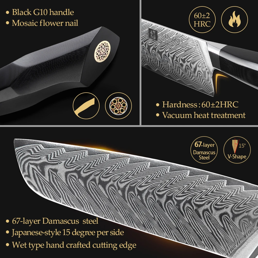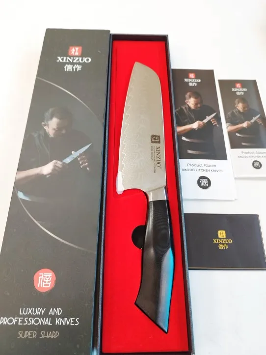 XINZUO Фэн серия Дамасская сталь нож сантоку