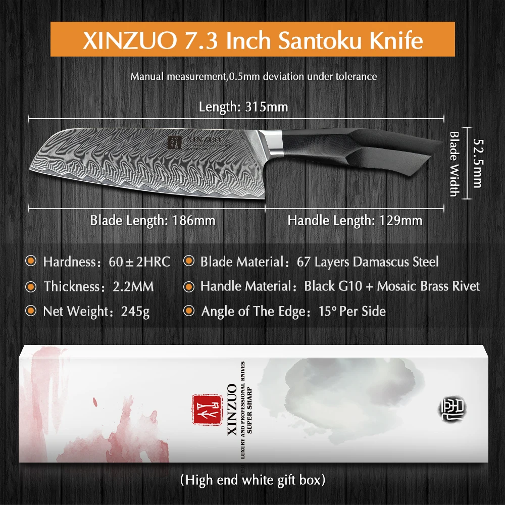 XINZUO 7,3 "дюймовый нож Santoku VG10 Дамасская сталь эргономичная ручка Новые кухонные ножи упорная резкость нож для мяса