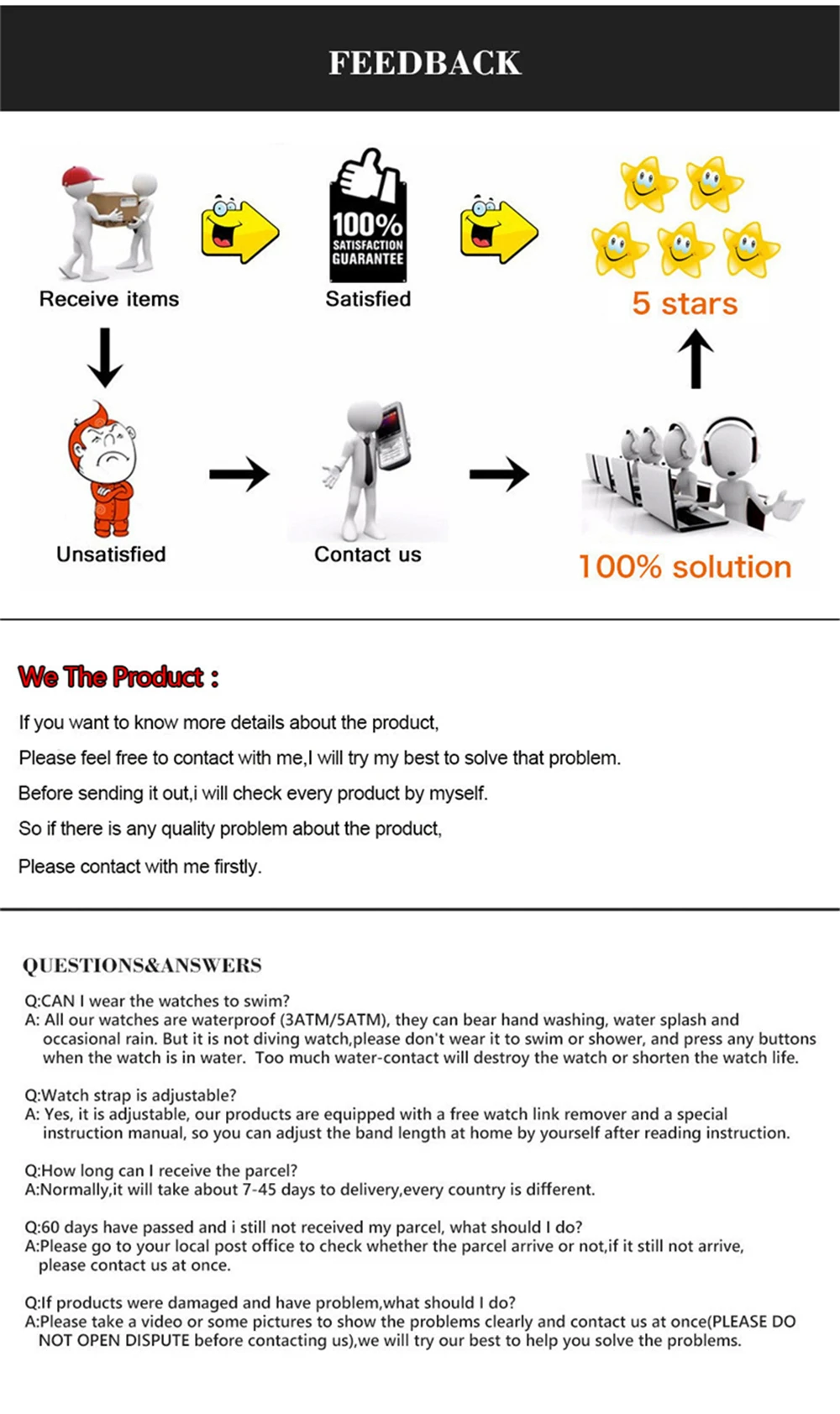 Оплата Мы принимаем alipay здесь. Все основные кредитные карты принимаются через безопасный платежный процессор ESCROW. ПересылкаВремя доставки около 7-60 рабочих дней. Доставка в некоторые страны может занять больше времени, особенно в Бразилию, Южную Америку, страны Африки.(1) В: Когда я совершу оплату, в какое время может быть отправлен?О: отправлено в течение 48 часов и предоставляется номер отслеживания.(2) В: как долго я получу посылку? Если не получили, как я могу это сделать?Ответ: По вашей стране, 7-60 дней. Более 60 дней не получили, мы вернем вам деньги.(3) В: если товар имеет проблемы с качеством, как я могу сделать?A: пожалуйста, свяжитесь с нами, мы решим проблему. Если покупатели хотят узнать детали стоимости доставки, пожалуйста, свяжитесь с нами, и мы предоставим вам разумные варианты транспортировки. Гарантия Если товар будет поврежден, мы предоставим гарантию 1 месяц.Если покупатели должны сделать возврат, пожалуйста, обсудите с нами программы возврата.Независимо от того, у покупателей есть какие-либо проблемы, пожалуйста, свяжитесь с нами в любое время.Мы принимаем советы покупателей и стремимся обеспечить лучший опыт покупок.Мы постоянно даем покупателям льготную цену, внимательные поздравления, Сюрприз подарок. Обратная связь Каждый отзыв-это любовь.(A) когда вы удовлетворены своей покупкой, мы искренне надеемся, что вы можете оставить нам положительный отзыв.Мы также оставим вам положительный отзыв.(B) Если вы не удовлетворены своей покупкой, пожалуйста, свяжитесь с нами, прежде чем оставлять нейтральный или отрицательный отзыв.Мы свяжемся с Вами в течение 24 часов, поработаем с вами, пока вы не будете удовлетворены.