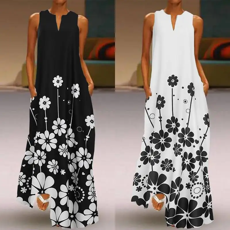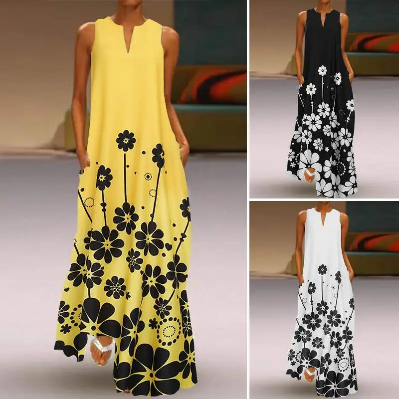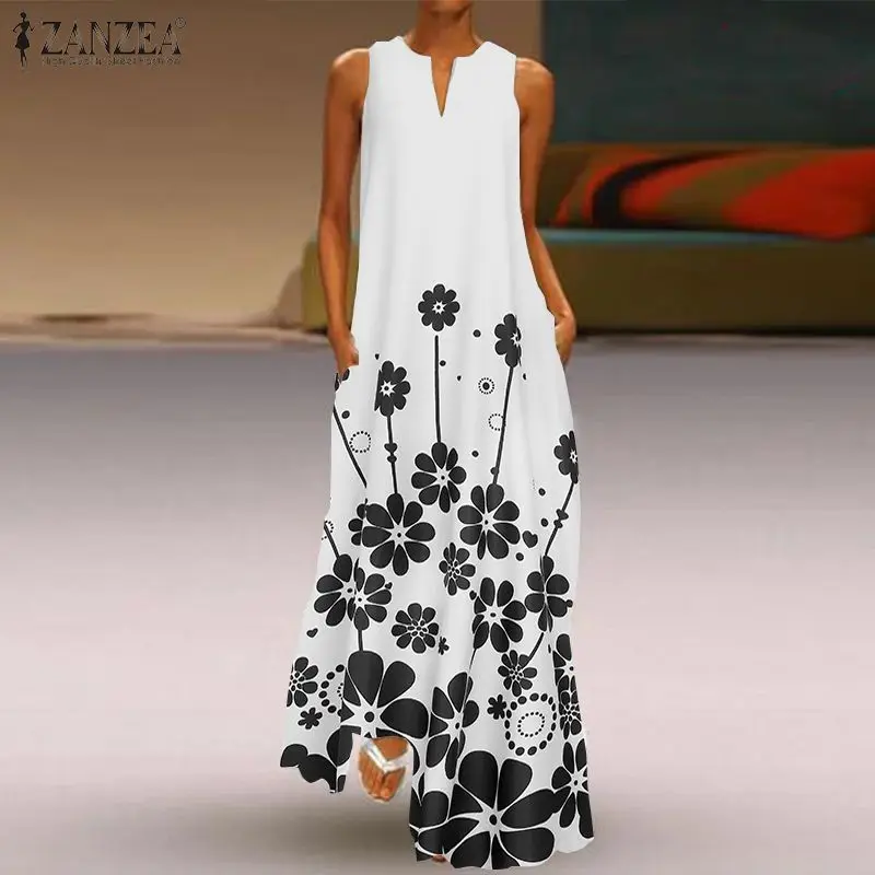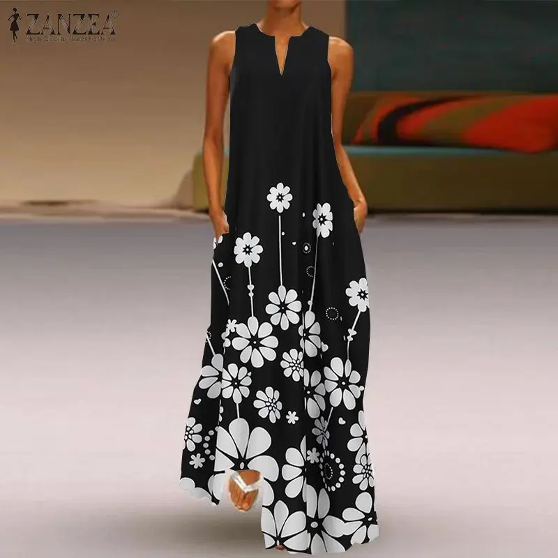 Сарафан ZANZEA женский с богемным принтом, повседневный Макси Сарафан без рукавов, с V-образным вырезом и цветочным принтом, лето 2021