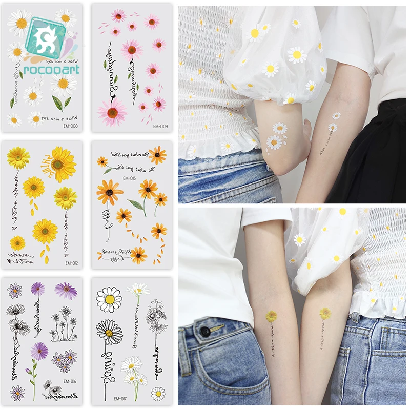 Горячая Распродажа 2020 маленькая Маргаритка временная татуировка свежий желтый цветок Подсолнух серия девушка рука поддельные Переводные татуировки