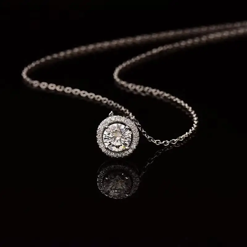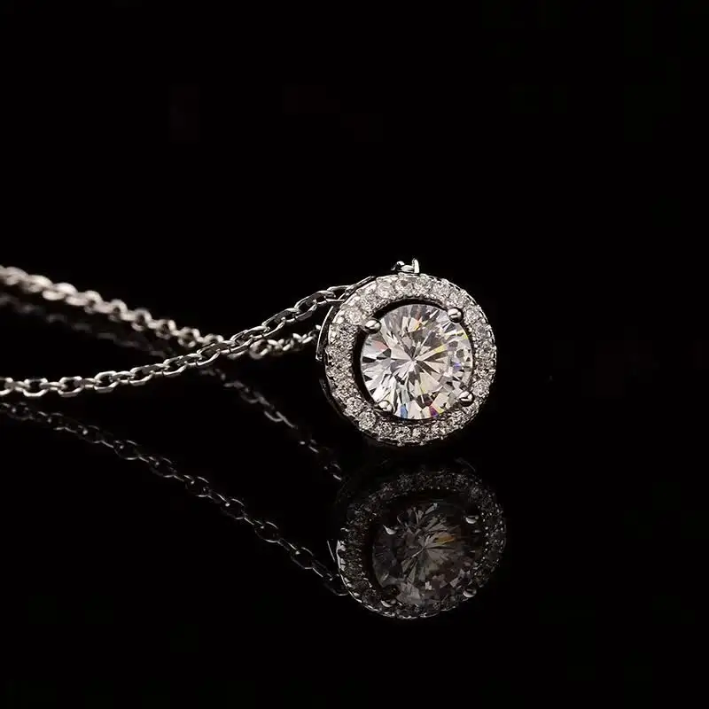 Кулон с круглым муассанитом Женский, ожерелье из стерлингового серебра 925 пробы с цепочкой белого цвета D 1 карат 2 карата, изящная бижутерия