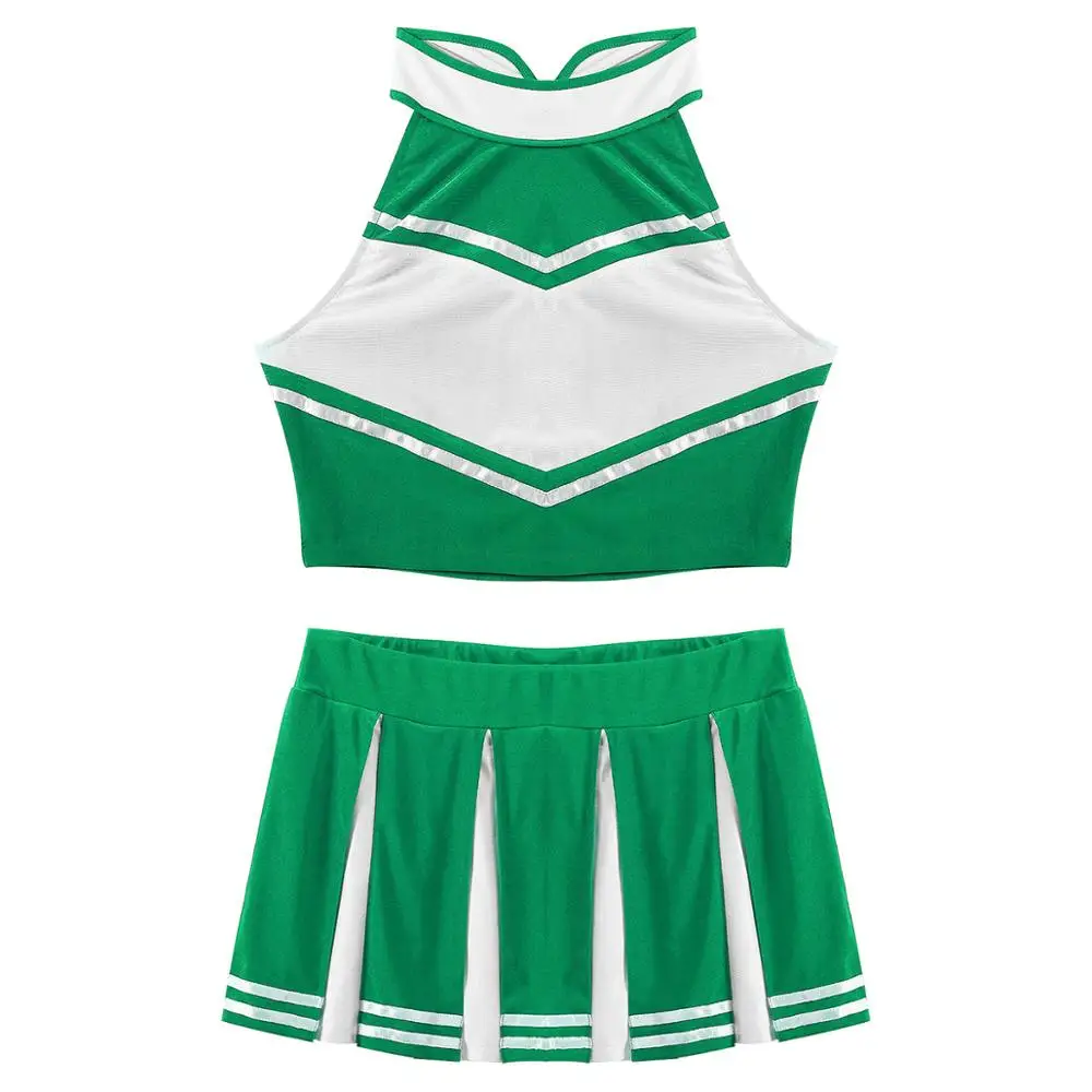 Женский костюм Черлидинга из 2 предметов, укороченный топ без рукавов с воротником-стойкой + плиссированная мини-юбка