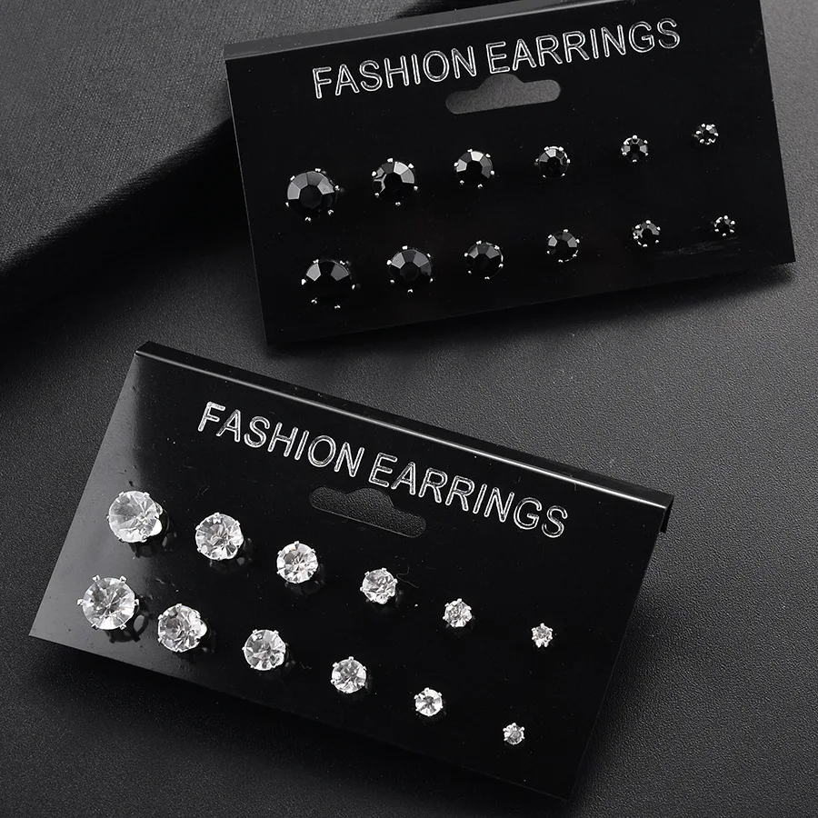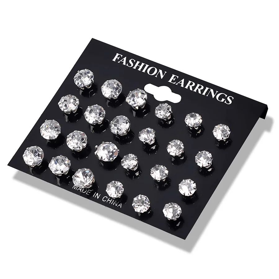 Набор из 12 пар серег-гвоздиков с цирконом, с блестящими кристаллами, для мужчин и женщин, украшения для вечевечерние в стиле панк, модные мини-серьги
