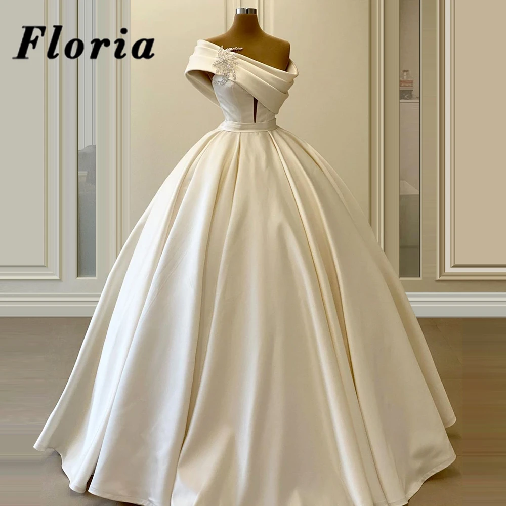Ручная работа пышные атласные свадебные платья 2020 цвета слоновой кости Дубай кутюр одно плечо Свадебные платья расшитые бисером платья невесты Vestido De Novia
